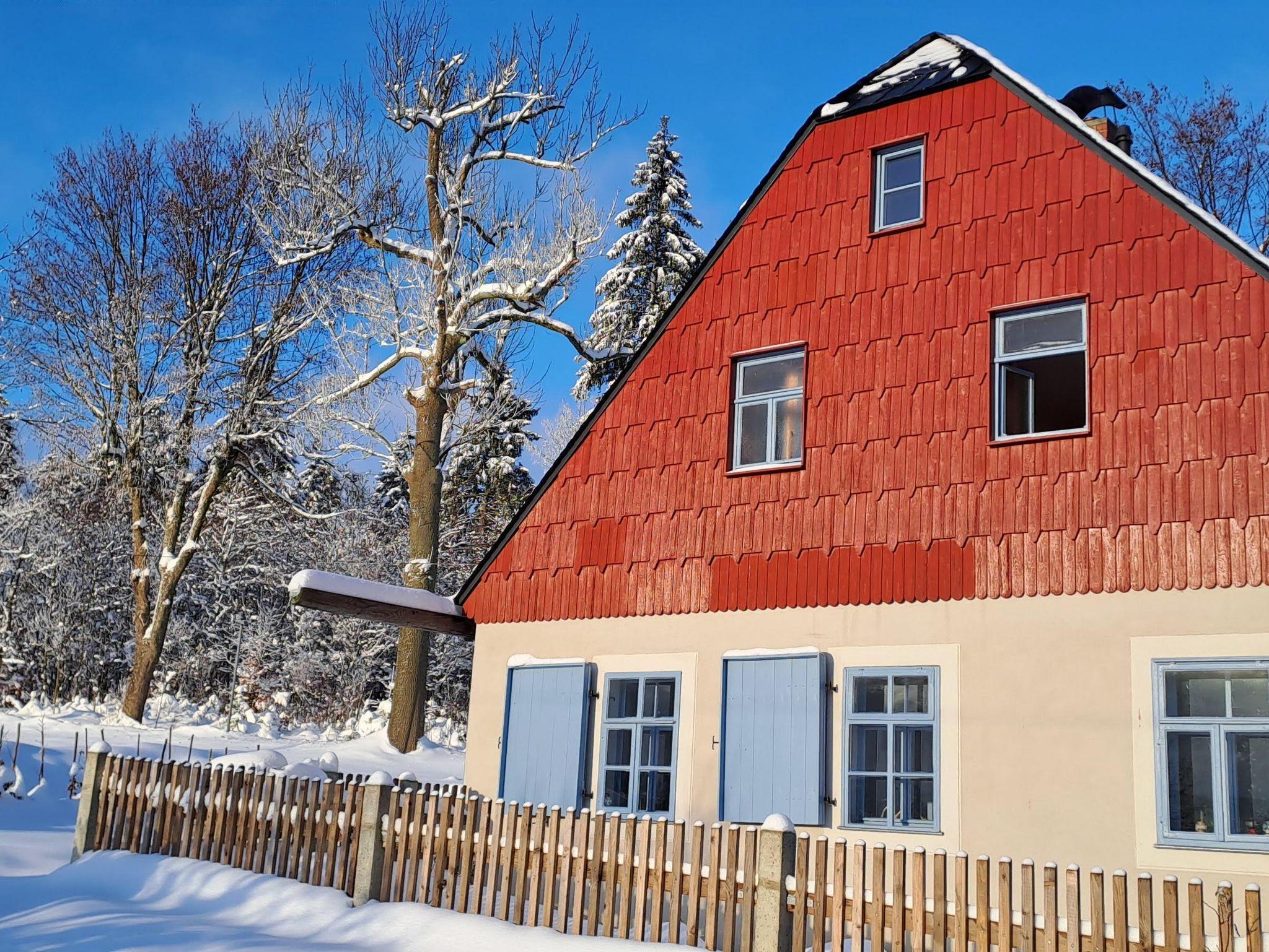 Ihr Ferienhaus FERGUNNA befindet sich am Kammweg des Erzgebirges in einer weiträumigen, vollständig von Wald umschlossenen Streusiedlung. Ruhig, in Alleinlage, direkt am Wald und mit Blick über herrliche Bergwiesen, genießen Sie das historische Waldarbeiterhaus aus dem Jahr 1875.