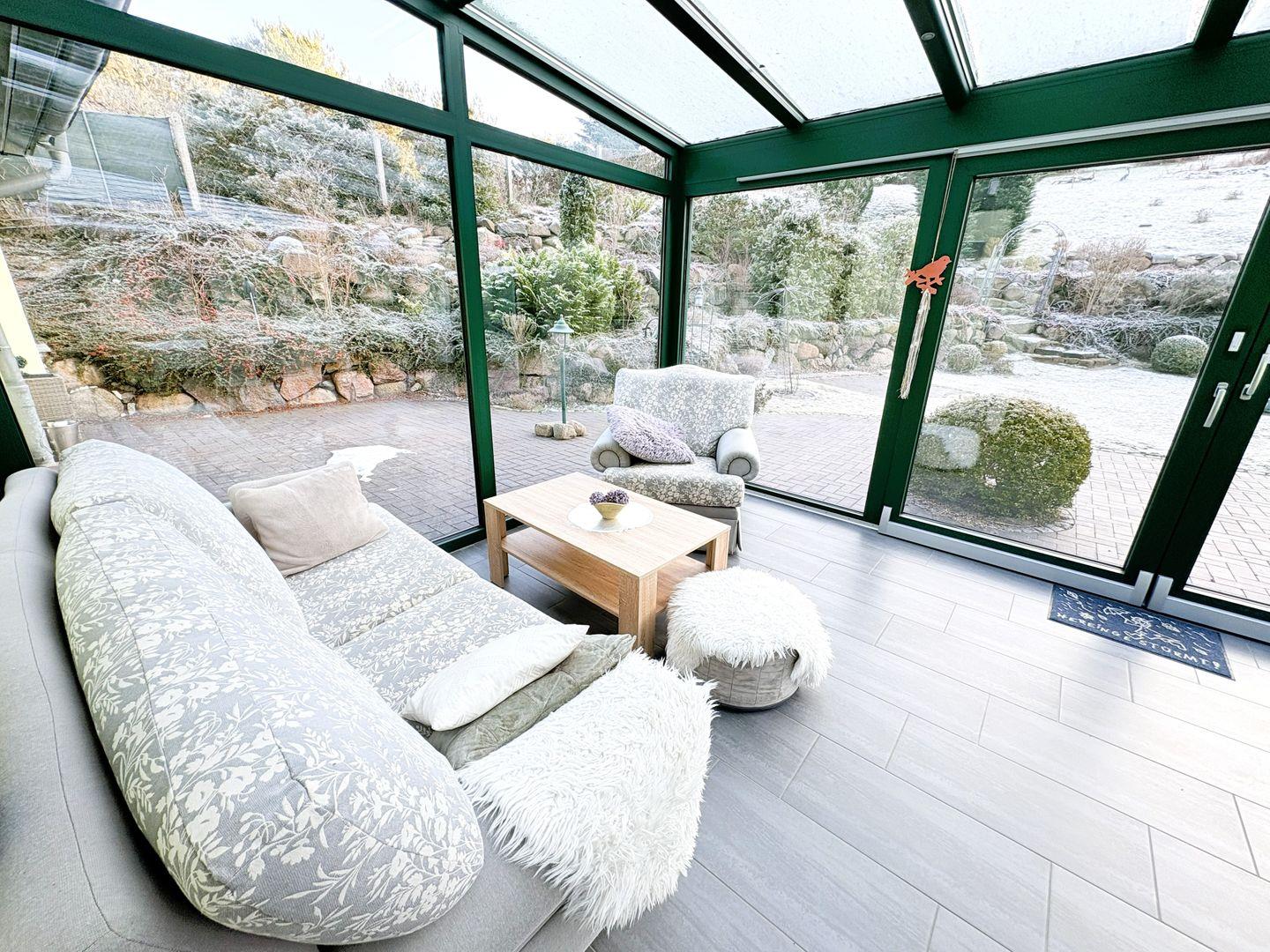 Wintergarten mit zweitem Essbereich und automatischer Beschattung – ideal bei jedem Wetter