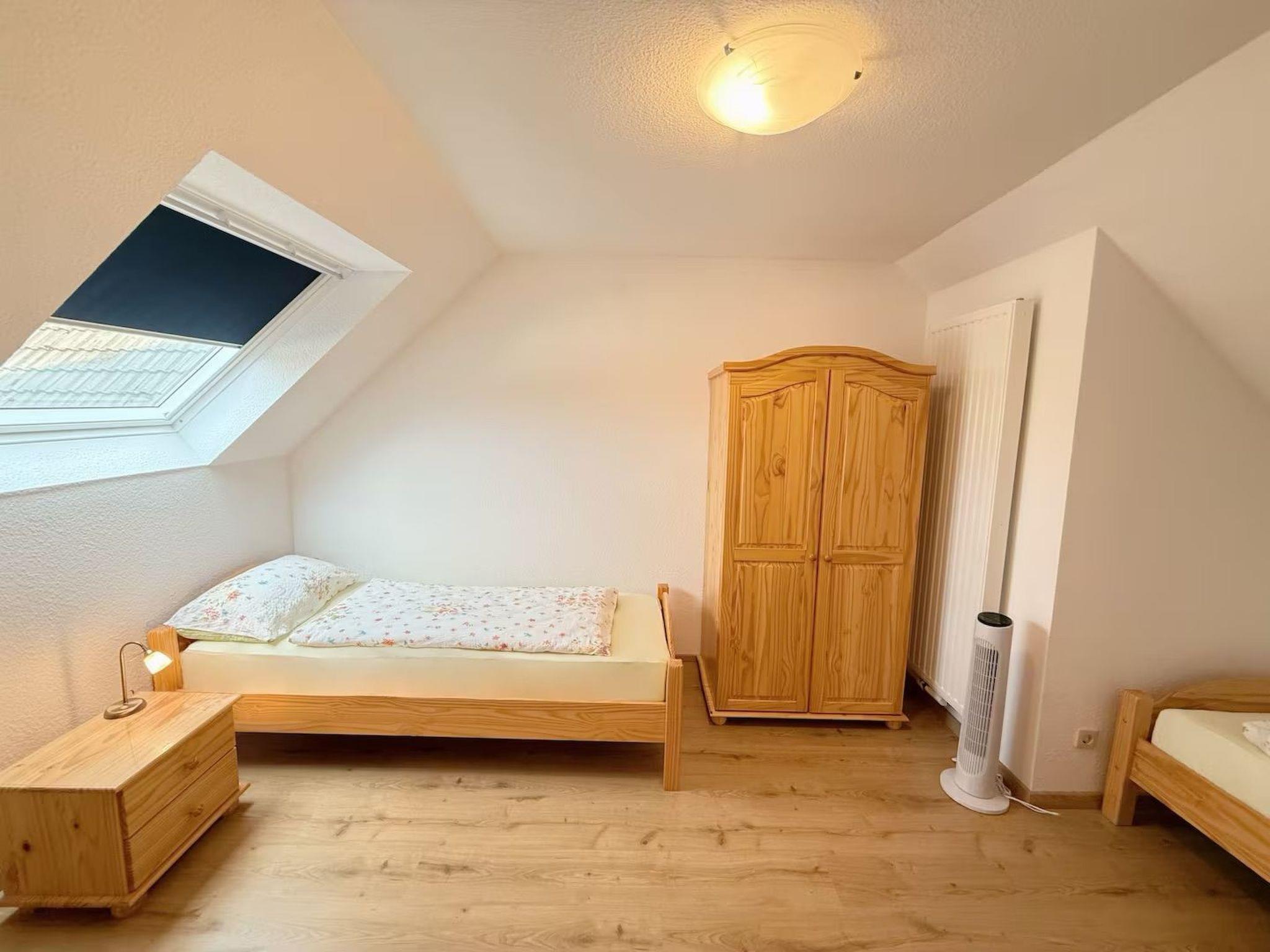 Inside, the house has been thoughtfully equipped to cater to your every comfort. The fully equipped kitchen boasts a dishwasher, fridge with freezer, oven, ceramic hob, toaster, egg cooker, coffee machine, kettle, and much more, making meal preparation a breeze. The spacious, modern bathroom features a walk-in shower, toilet with sink, and pleasant underfloor heating. Fresh towels add an extra layer of comfort, and special toiletries are available upon request. The cozy inclusion of underfloor heating in parts of the apartment and conveniences like a washing machine, iron, ironing board, and clothes rack, are all at your disposal free of charge. Additionally, a double bedroom with a large wardrobe offers peace and a restful night's sleep, while upstairs, another bedroom with two single beds and a wardrobe caters to family or friends.