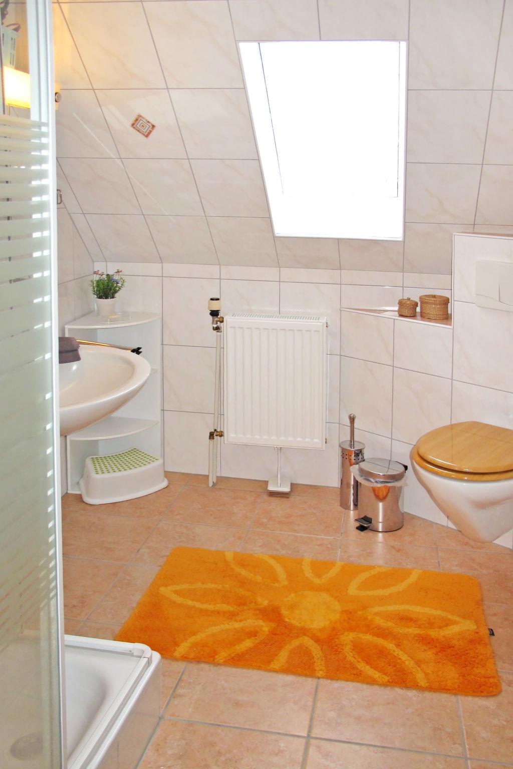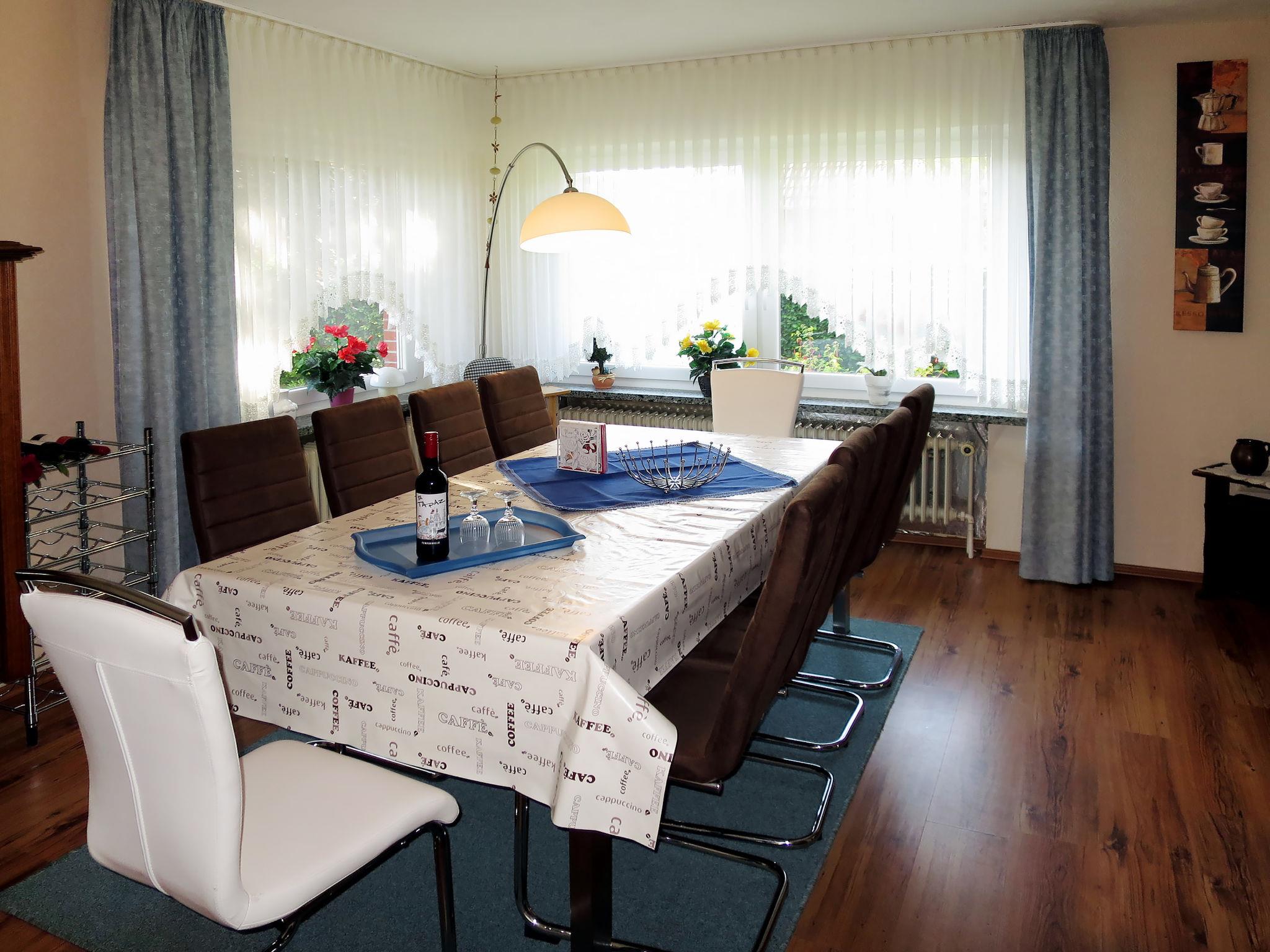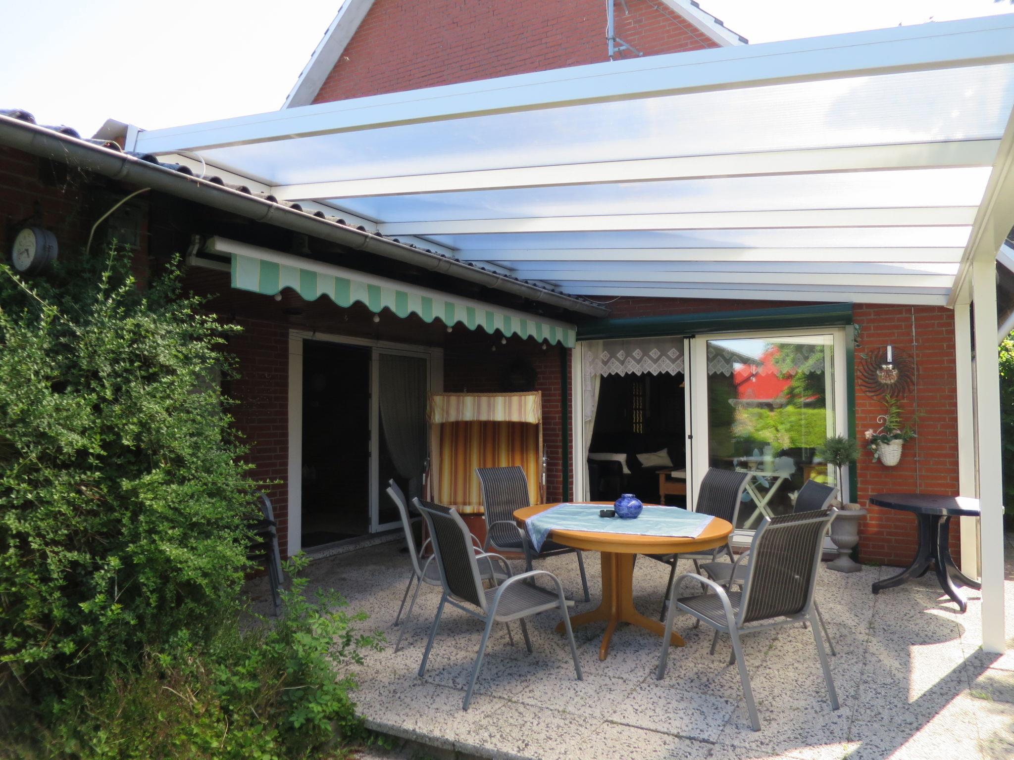 7-room house 215 m2 on 2 levels, on the ground floor. Bright, cosy furnishings: living room with satellite TV (flat screen), radio, CD-player and DVD. Exit to the terrace. 1 room with 1 bed (90 cm, length 200 cm). 1 room with 2 beds (90 cm, length 200 cm), hand-basin and satellite TV. Exit to the garden. Dining room. Kitchen (oven, dishwasher, 4 ceramic glass hob hotplates, toaster, kettle, microwave, freezer, electric coffee machine). Bath/WC, sep. WC. Upper floor: 1 room with sloping ceilings with 1 double bed (180 cm, length 200 cm), satellite TV. Exit to the balcony. 1 room with sloping ceilings with 1 double bed (180 cm, length 200 cm), satellite TV. 1 room with sloping ceilings with 1 double bed (2 x 90 cm, length 200 cm). Shower/WC. Terrace roofed. Terrace furniture, balcony furniture, barbecue (portable), deck chairs (2), box-room. Facilities: washing machine, dryer. Internet (WiFi, free). Please note: non-smokers only. Maximum 2 pets/ dogs allowed. Smoke alarm. Two double beds on the upper floor are box spring beds.