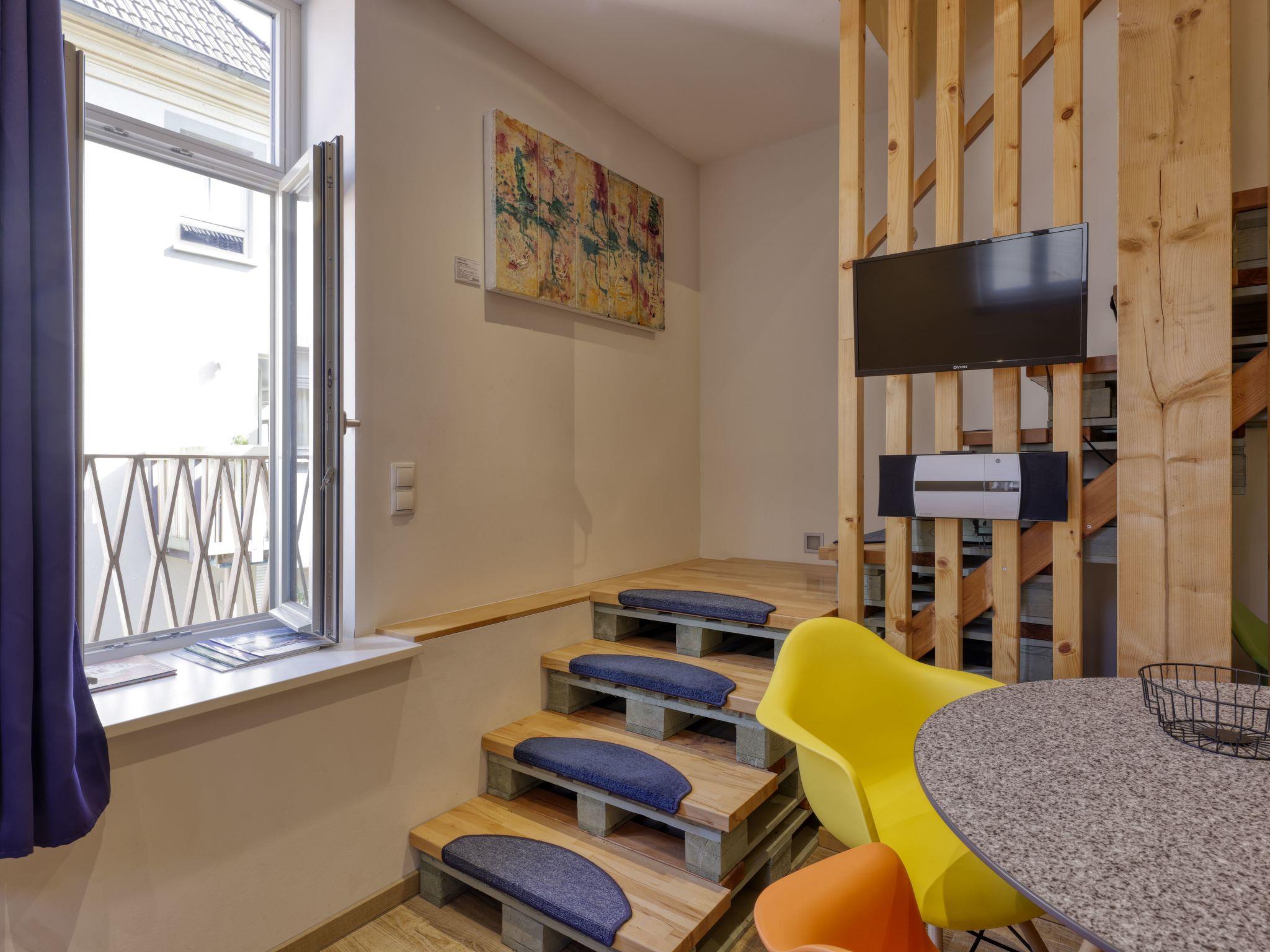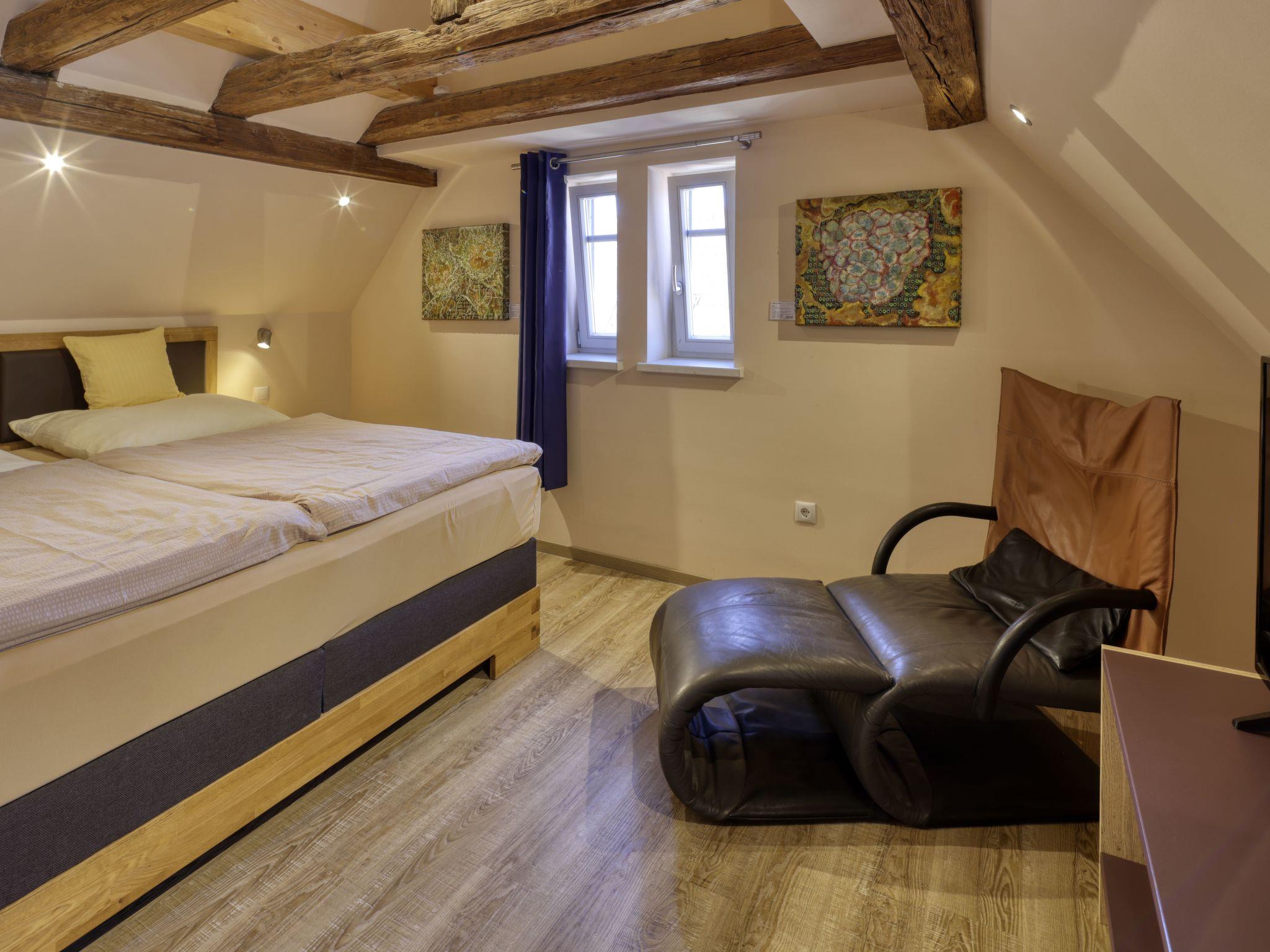 Quiet, cosily furnished deluxe flat over 2 floors on the upper floor of the Hofstallung with a total of 6 flats. in the cosy bedroom, you can lie in the utmost comfort on a solid box-spring double bed under cosy down duvets and let the rising sun wake you up; in the evening, you can enjoy the heavenly tranquillity of the idyllic inner courtyard. as in the entire house, underfloor heating is also installed here, which emits the heat pleasantly evenly. Sun-yellow roller blinds on the windows facing the inner courtyard provide privacy, while the parquet flooring makes the rooms pleasant to walk on and easy to clean, as does the bright and friendly wet area. Right next to the apartment complex you will find the Mainkai promenade for strolling and sunbathing, as well as a well-run international restaurant with sun terraces, lounge and vaulted cellar. Just 80 metres above, on the market square, there are several restaurants ranging from Chinese and Greek to one of the best Franconian brewery pubs, the Bräustüble. You will also find bakers, butchers and all other shops for your daily needs within walking distance around the market square. Brief descriptionOther : Non-smoking houseShort description 1Number of kitchens : 1Bedroom 1Other bedroom furnishings : ZEN-SeSsel and TVSurroundingsLeisure facilities : Car hire, bicycle hireSports facilities in the surrounding area : Fishing, Basketball, Football pitch, Golf course, Hunting, Canoeing, Mountain biking, Cycling, Horse riding, Rowing, Sailing, Sports centre, Tennis, Water skiingGarden and outdoor facilitiesGarden equipment : Garden furniture available, Barbecue, GazeboServicesServices (may apply) chargeable) : Cleaning service during your stay, Maid service