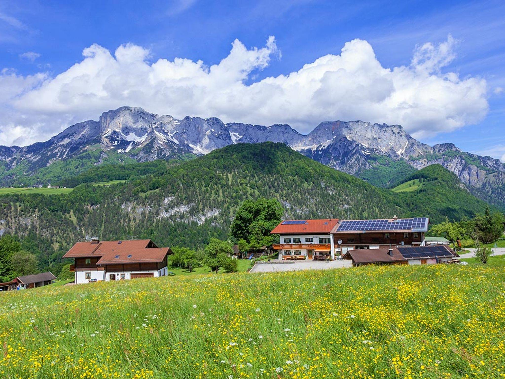 Erleben Sie die schönsten Tage des Jahres mit Ihrer Familie auf einem Bauernhof in den Berchtesgadener Alpen. Im Steinlehen finden Sie Ruhe, Erholung und Entspannung vom hektischen Alltag in familiärer Atmosphäre. Genießen Sie einen atemberaubenden Blick auf die bayerischen Berge. Unser großer Garten mit herrlichem Bergblick auf die Berchtesgadener Berge lädt zum Sonnenbaden und Faulenzen ein. Der Spielplatz am Waldrand mit Spielgeräten und Streicheltieren lässt bei Kindern garantiert keine Langeweile aufkommen. Unser bewirtschafteter Hof liegt im malerischen Marktschellenberg zwischen Berchtesgaden und Salzburg. Der Urlaubsort bietet Ihnen abwechslungsreiche Möglichkeiten, um den wohlverdienten Urlaub aktiv und erlebnisreich zu gestalten. Und das zu jeder Jahreszeit. Wir würden uns sehr freuen, Sie demnächst in unserem Haus als Gäste begrüßen zu dürfen. Ihre Familie Fuchs