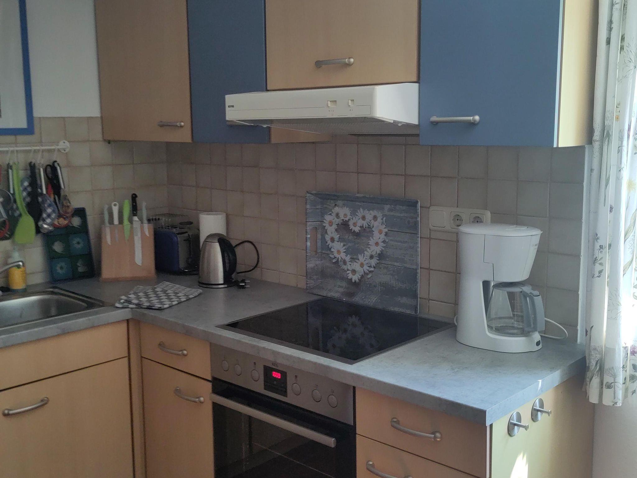 Unsere sehr ruhige Nichtraucher-Ferienwohnung liegt am Ende einer Sackgasse in einem Einfamilienhaus. Sie verfügt über eine Wohnküche mit Schlafcouch sowie einem Schlafzimmer mit Doppelbett (1,60 breit). Die Wohnung ist komplett für den täglichen Bedarf ausgestattet. Kinderbett und Hochstuhl stehen auf Anfrage zur Verfügung. Im Bad können sie die durch Solarthermie erwärmte Dusche genießen. Geheizt wird die Wohnung über Wandflächenheizungen über eine Wärmepumpe, die durch die Photovoltaik auf dem Dach (teilweise) gespeist wird.