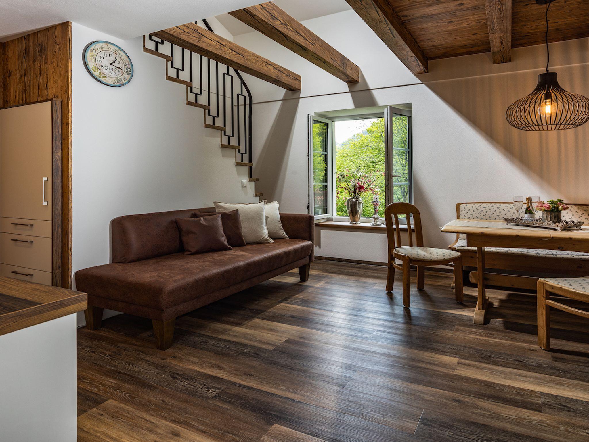 Die Wohnung ist im gemütlichen Landhausstil eingerichtet und bietet genug Platz für bis zu 5 Personen.