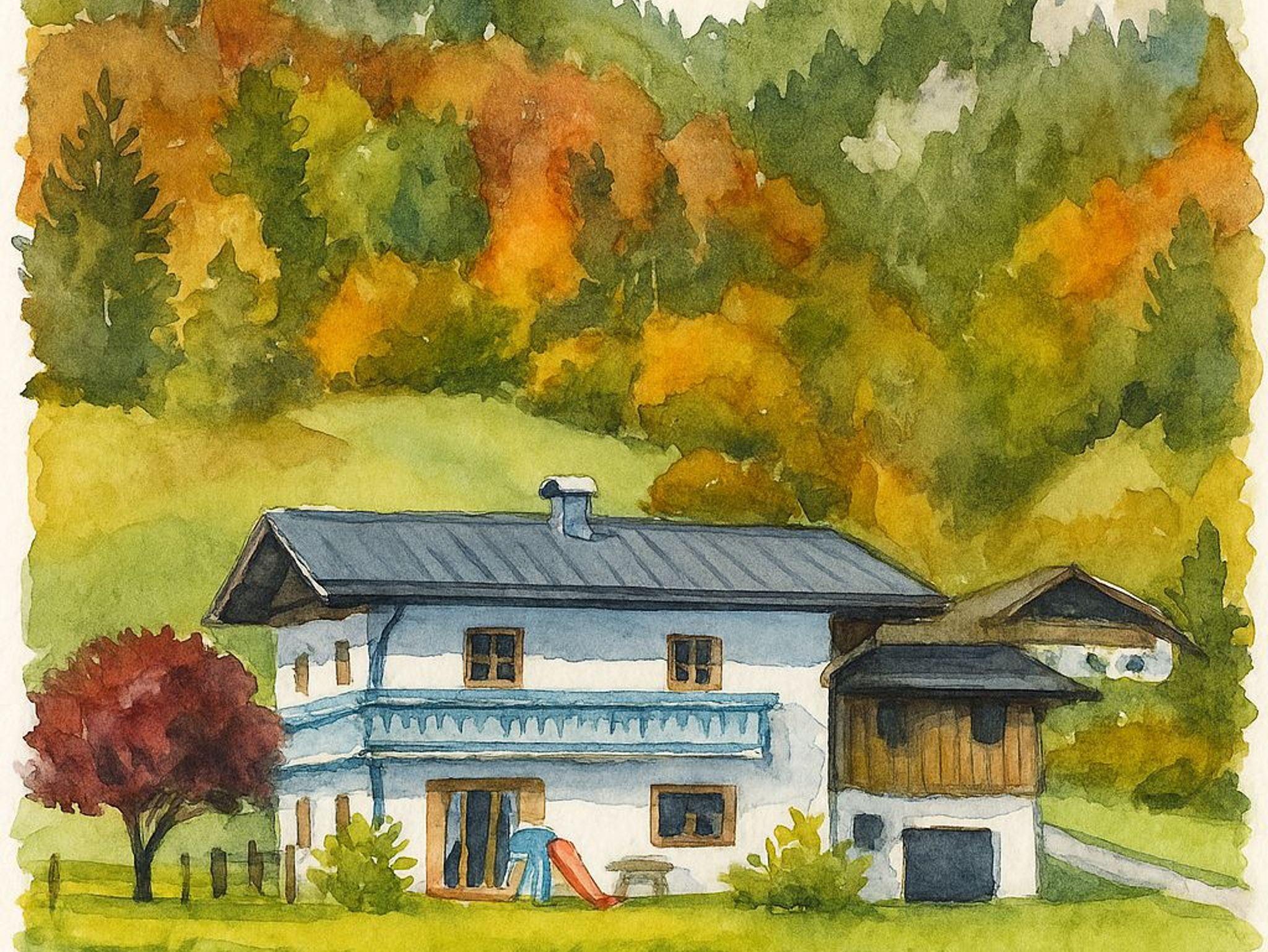 Unser Einfamilienhaus liegt in ruhiger Lage, umgeben von Wiese und nahe der Berchtesgadener Ache. Unser Haupthaus ist aus den 60er Jahren und wird seit 2021 von uns kernsaniert. Die Ferienwohnung befindet sich im neu errichteten Anbau. Wir bitten um Verständnis - die zur FeWo zugehörige Terrasse ist noch in Entstehung. Sie kann jedoch trotzdem genutzt werden. Sitzgelegenheiten sowie Sonnenliegen sind vorhanden. Außerdem gibt es einen großzügigen Garten, der teilweise mitgenutzt werden kann.