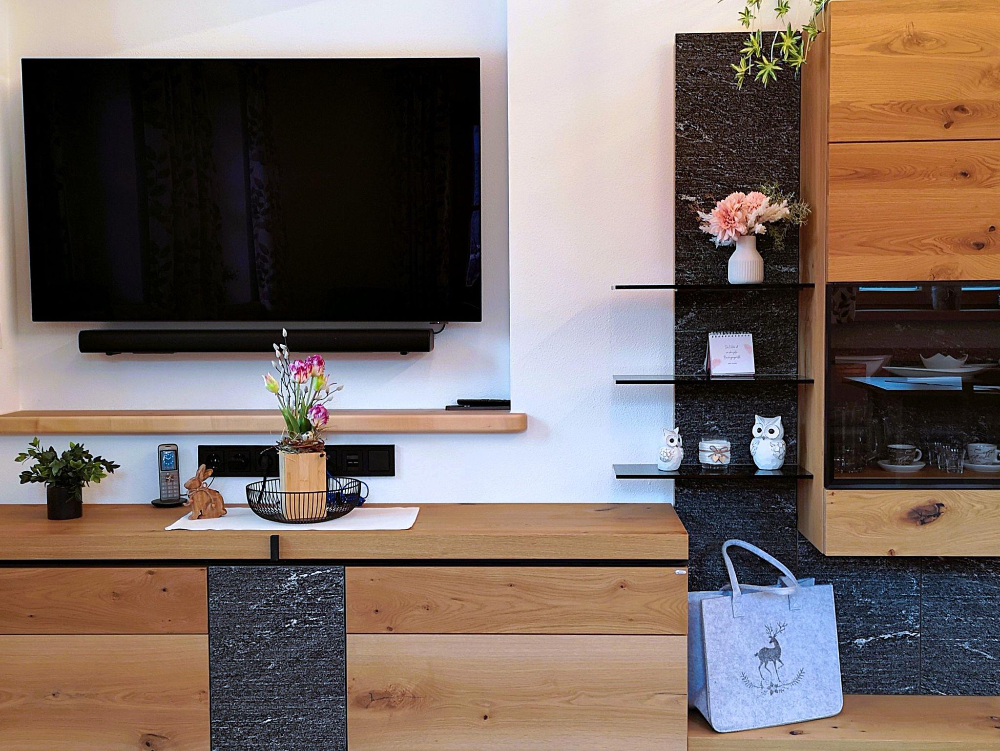 Der lichtdurchflutete Wohnbereich ist die Seele des Hauses, wobei das viele Holz seinen natürlichen Charme spielen lässt. Ein Gefühl des Wohlbefindens stellt sich in dieser ruhigen und gemütlichen Atmosphäre sofort ein.