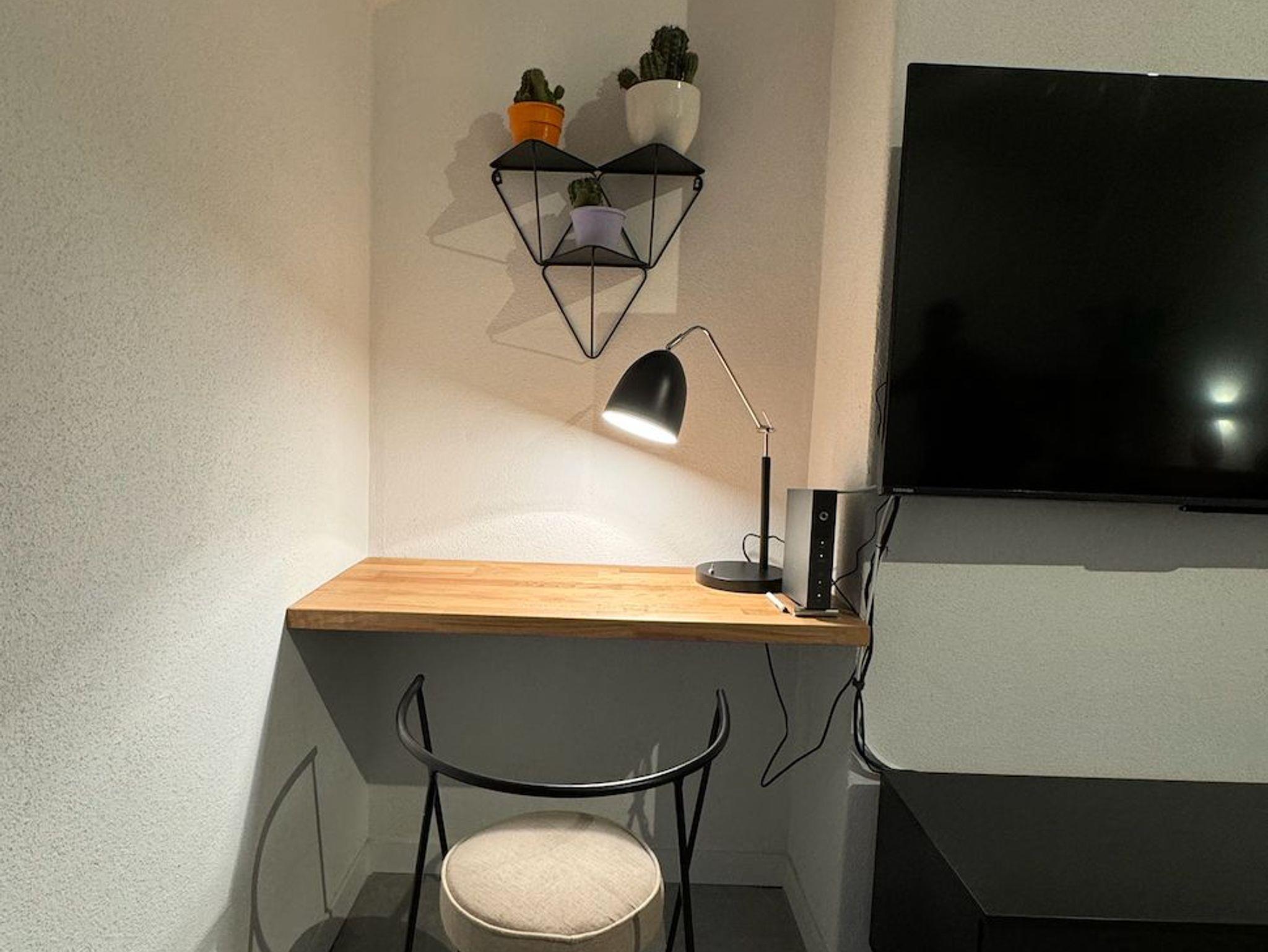• Schreibtisch: Im Wohnzimmer haben Sie einen Schreibtisch, damit auch ein bequemes Home Office möglich ist.