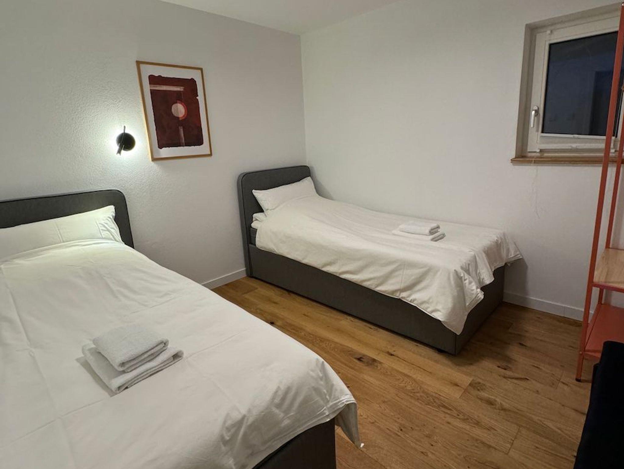 Schlafzimmer: Jedes Schlafzimmer ist mit einem Schrank ausgestattet, damit Sie sich wie zu Hause fühlen und ausreichend Stauraum haben.