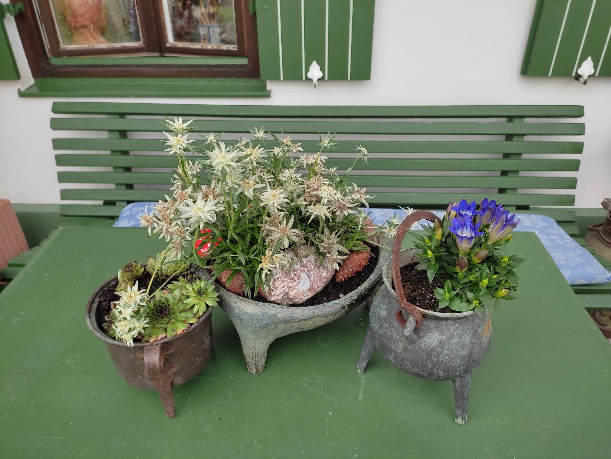 Das kleine freundliche Ferienzimmer Enzian mit Bergblick befindet sich im Obergeschoss und ist für Kurzzeitaufenthalte und Wanderer bestens geeignet. Die große gemeinschaftliche gut ausgestattete Küche und das neue, große aufwendig eingerichtete gemeinschaftliche Bad in einem mittelalterlichen Gewölbe befinden sich im Erdgeschoß.