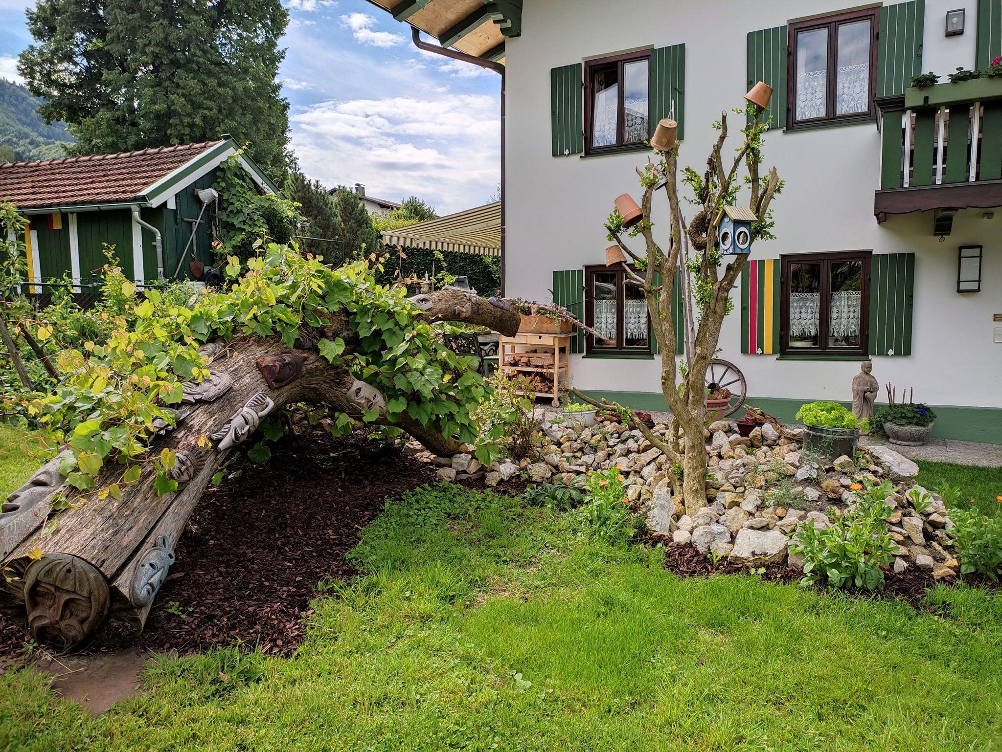 Können Sie sich vorstellen, wie frühere Generationen gelebt haben? Möchten Sie dies mal in Ihrem Urlaub ausprobieren? Das Haus ist von anno 1583 und erinnert Sie vielleicht an die alten Geschichten Ihrer Urgroßeltern. Vieles hier erinnert daran, wie es früher einmal war, eingebettet in modernem Komfort, also ein richtiges Erlebniswohnen. Und das alles künstlerisch geschmackvoll und liebevoll arrangiert. Dazu der fantastische Bergblick vom Fenster aus zur Burg Marquartstein, vom Predigtstein zum Hochlerch, dem Vorberg des Hochgern, sowie das erhabene Felspanorama der Luchsfellwand. Auch schaut man direkt in den großzügigen Garten auf die wunderschöne Richard-Strauss-Villa.