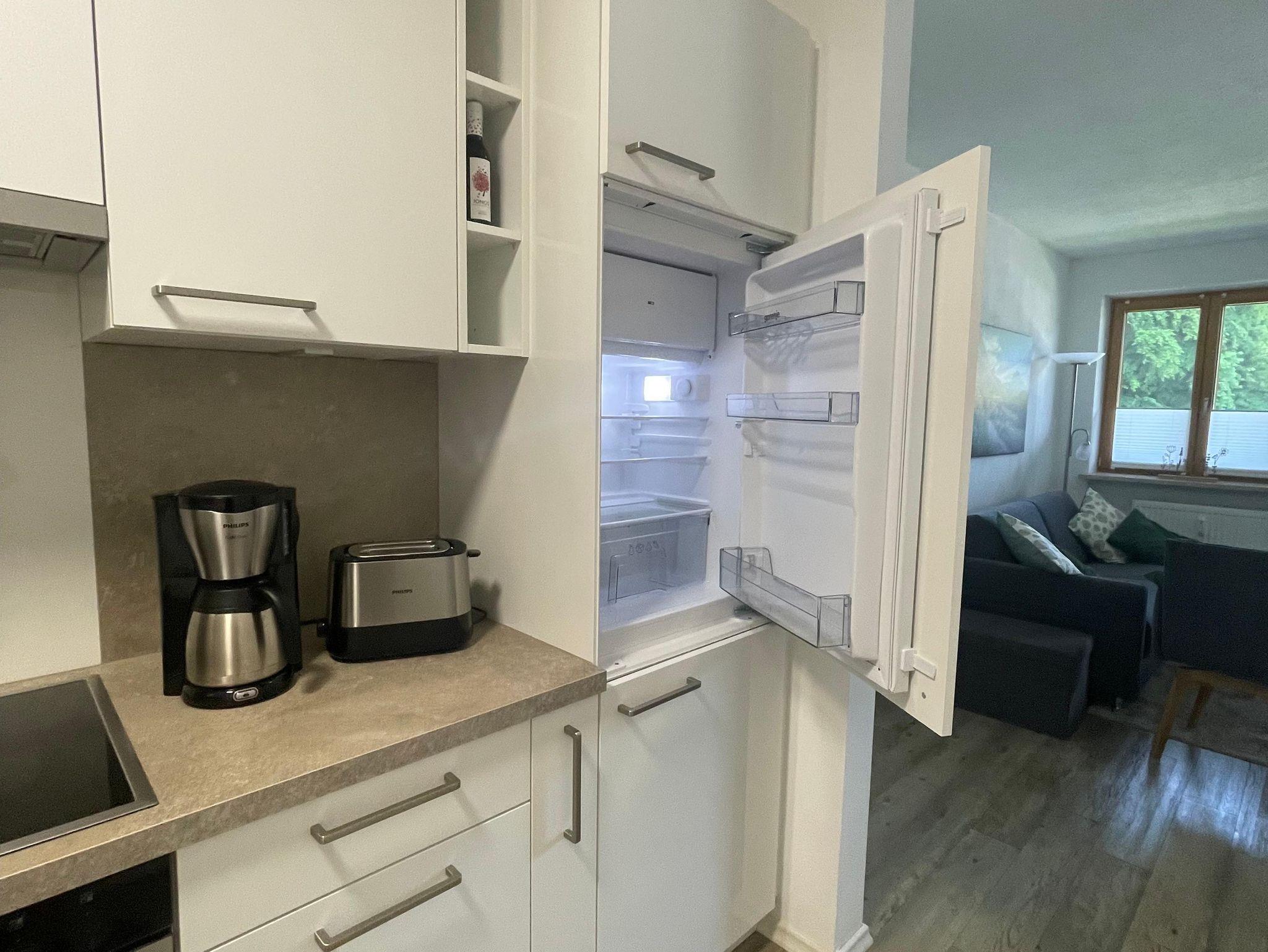 Die offene Küche ist voll ausgestattet mit allem, was man brauchst: Cerankochfeld, Backofen, Kühlschrank mit Gefrierfach, Spülmaschine, Kaffeemaschine, Wasserkocher und Toaster. So lässt sich auch im Urlaub ganz entspannt kochen.