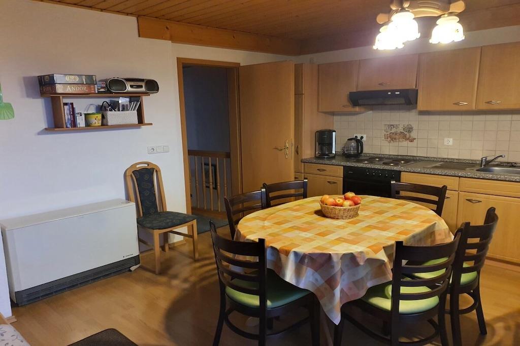 House in a dream location with distant views of mountains and valley, quiet location on the edge of the forest near the village. Expansion to 10 people possible (by renting the other half of the house).