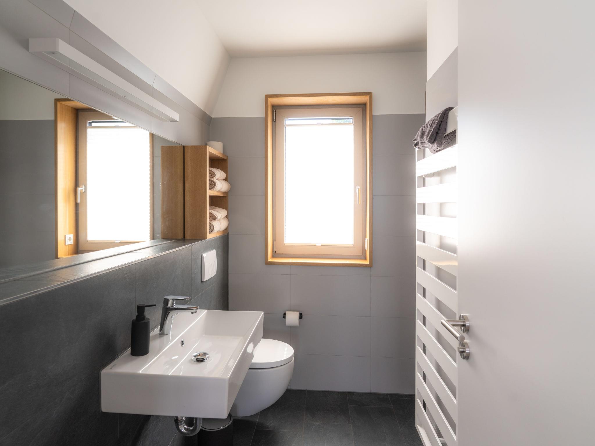 6-room house 180 m2. Object suitable for 8 adults + 2 children. Spacious and bright, very modern and wooden furniture furnishings: 1 room with 1 double bed (180 cm, length 200 cm), shower/WC. 1 room with 1 double bed (1 x 180 cm, length 200 cm), shower/WC. Open kitchen (oven, dishwasher, 4 induction hot plates, toaster, kettle, freezer) with dining table. Exit to the terrace. Upper floor: living room with satellite TV. 1 room with 1 double bed (180 cm, length 200 cm), shower/WC. 1 room with 1 double sofabed (160 cm, length 200 cm), 1 double bed (180 cm, length 200 cm), shower/WC. Top floor: gallery. Exit to the balcony. Shower/WC, Sauna. Electric heating. Parquet floors. Balcony, large terrace 24 m2. Terrace furniture, balcony furniture. Very beautiful distant view of the forest. Facilities: washing machine, dryer, sauna, children's high chair, baby cot, hair dryer. Internet (WiFi, free). Parking (3 cars). Please note: suitable for families. Non-smoking house. Smoke alarm, fire extinguisher. Bookings accepted for holiday purposes only.