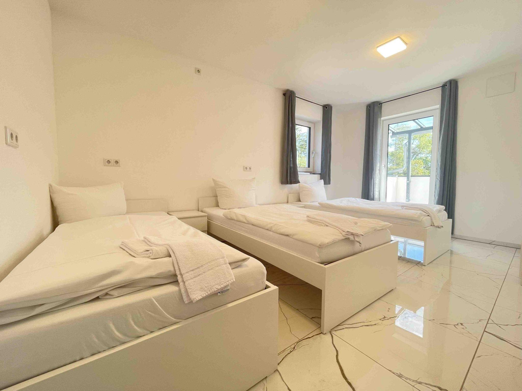 The furnished 115 m² loft flat in Maxhütte-Haidhof has four bedrooms with ten single beds and a sofa bed, making it suitable for up to eleven people.