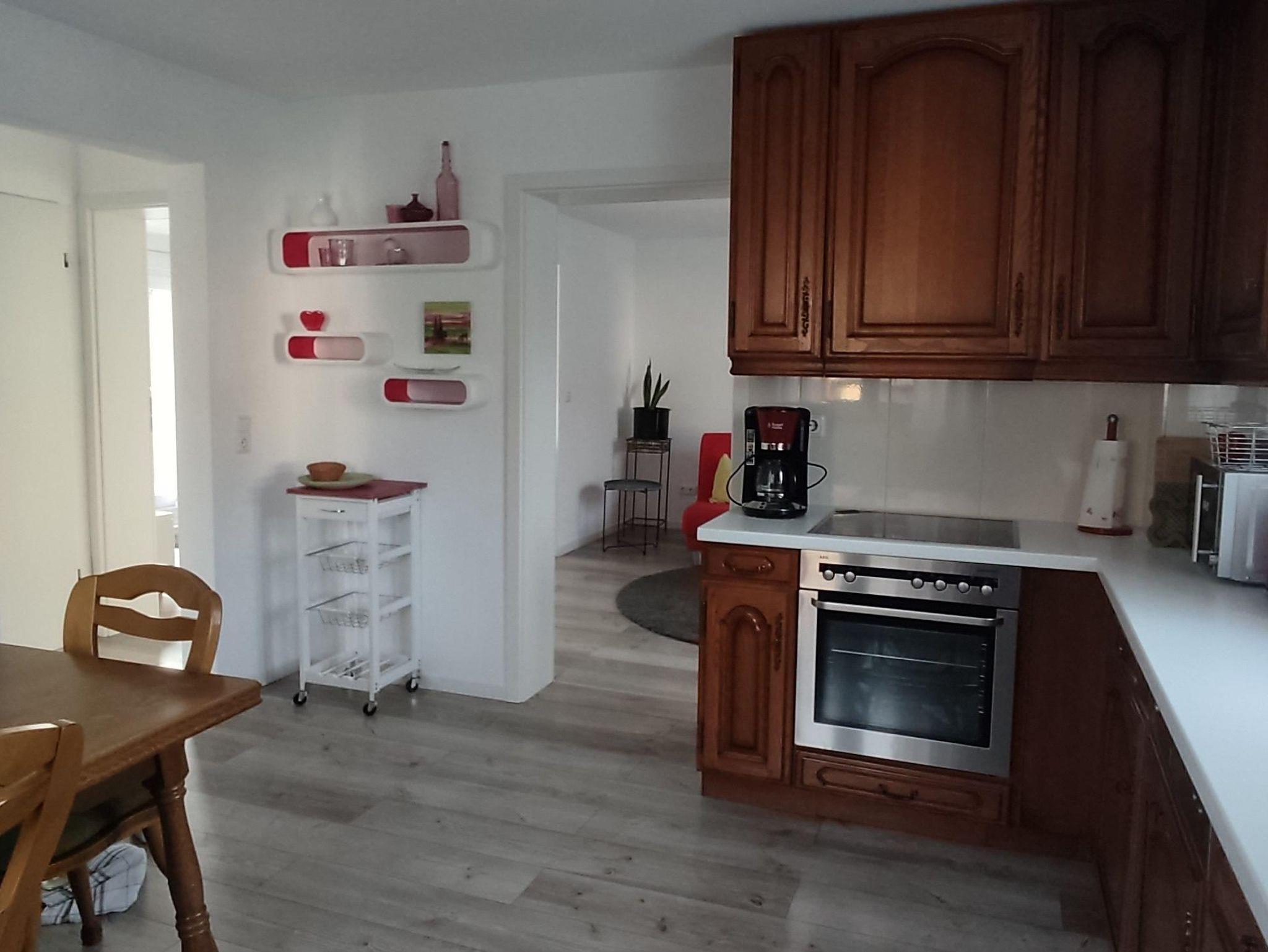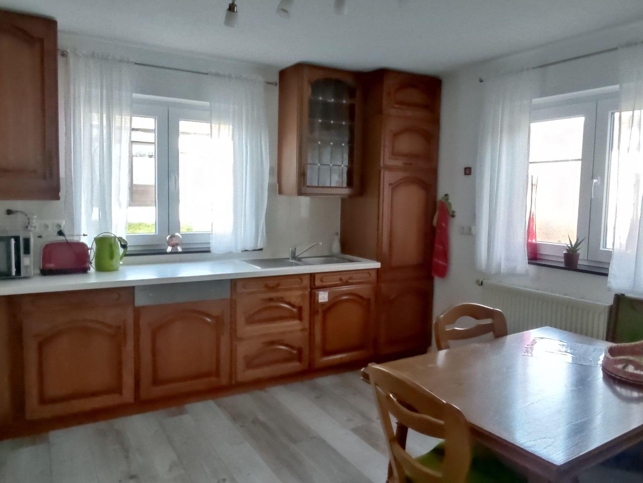 In unserem Nichtraucher Haus befindet sich eine große Wohnküche mit Eckbank und allen, in einer Küche nicht wegzudenkenden Utensilien, die zum Kochen, Backen und Beisammensitzen einlädt.
