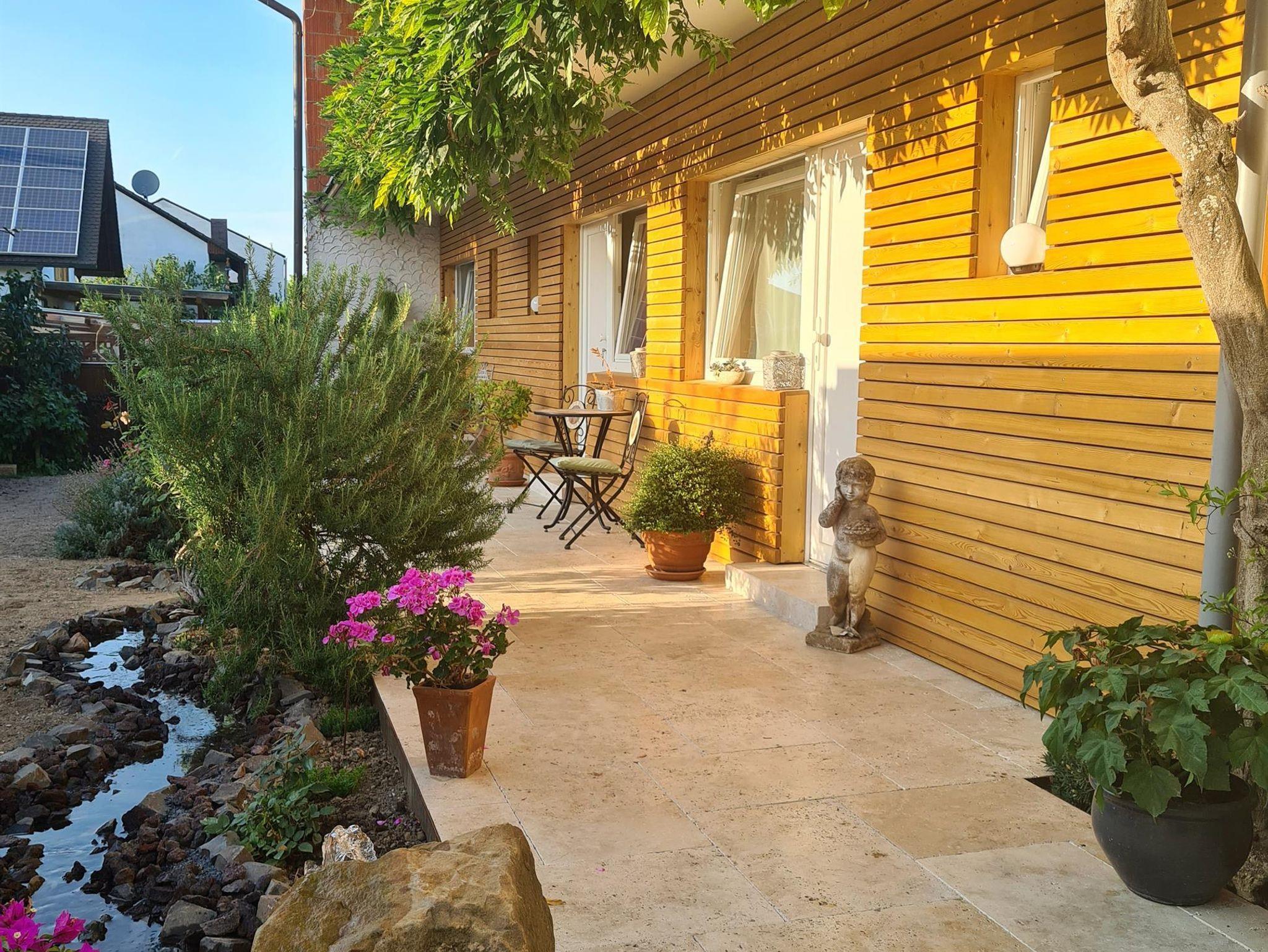 Meckenheim das Tor zur Mittelhaardt. Deidesheim, Ruppersberg, Niederkirchen oder auch Forst liegen in der Nähe, sie sind zu Fuß oder mit dem Fahrrad gut zuerreichen. Auch die Städte Ludwigshafen, Mannheim, Speyer oder Neustadt liegen verkehrsgünstig. Lassen Sie sich vom Charme der Pfalz und den edlen Weinen direkt vom Winzer verwöhnen. Viele Rad-und Wandermöglichkeiten im Pfälzerwald und in den Weinbergen laden ein. Gerne geben wir Tipps für Ausflüge und Veranstaltungen. Unser individuell geführtes Gästehaus liegt in einer ruhigen Seitenstrasse. Wir bieten behagliche Zimmer mit neuem Design, alle mit Dusche und WC. Ein schöner Garten mit familiärem Flair ldaet zum verweilen ein. In unserem sonnigen Innenhof können Sie die Pfälzer Lebensart so richtig genießen. Das Frühstück wird in unserem gemnütlichen Frückstücksraum mit regionalen Produkten serviert.