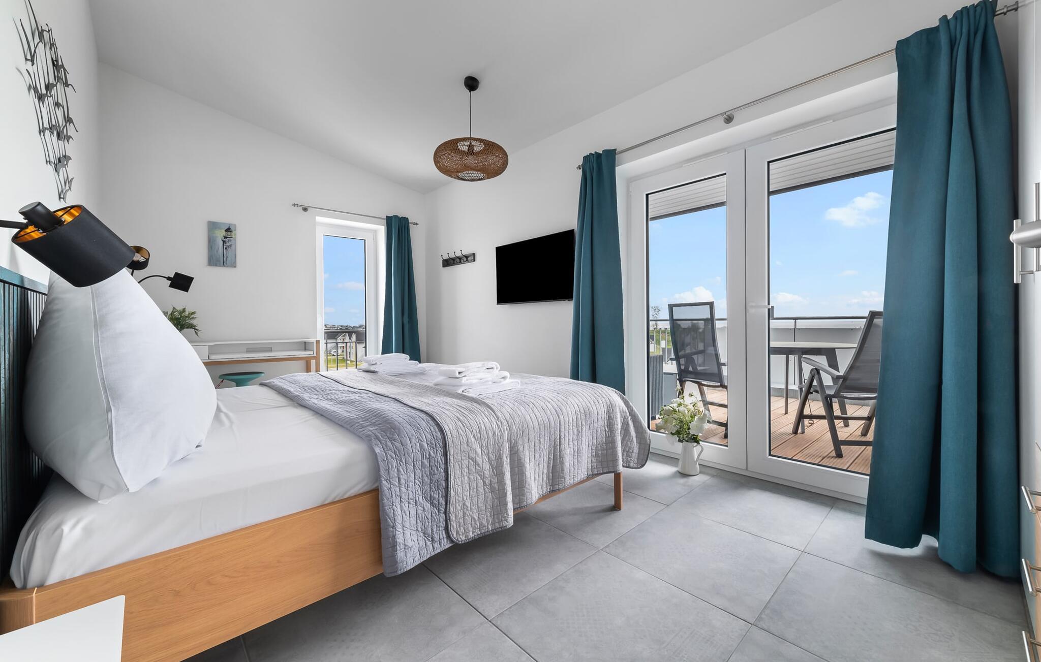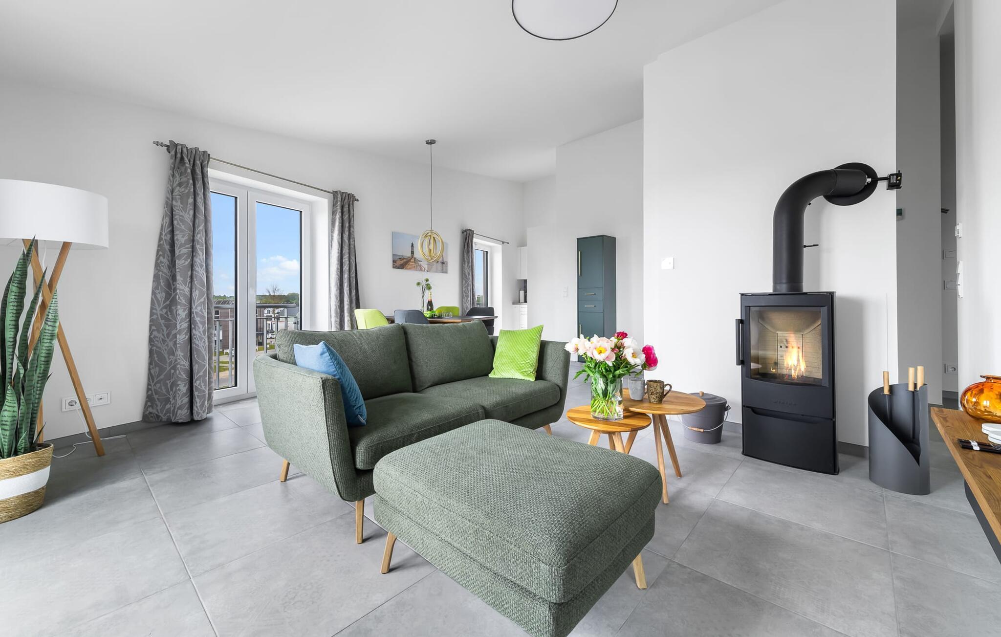 Penthouselejligheden MEERFÜRZWEI er ideelt placeret mellem den livlige havnepromenade og den omfattende Weidefelder-strand. Denne ferielejlighed er ikke kun imponerende på grund af sin centrale beliggenhed, men også udsigten til det omgivende vand fra alle vinduer. Den unikke udsigt over Slien og Østersøen inviterer jer til at slappe af og slappe af i denne lejlighed. Havnepromenaden i OstseeResort Olpenitz med dets voksende udbud og indkøbsmuligheder samt sejl- og sportsbådshavnen i OstseeResort Olpenitz kan nås til fods. Den maritime minigolfbane ligger i umiddelbar nærhed og byder på masser af variation og sjov. MEERFÜRZWEI sikrer en atmosfære fra første minut, takket være lejlighedens åbne plan og de lyse rum med højt til loftet. Den åbne stue/alrum med integreret køkken af høj kvalitet oversvømmes af lys takket være vinduesfronten fra gulv til loft og byder på en unik udsigt. Udover den behagelige sofa med fjernsyn, finder I pejsen foran, hvor I kan nyde samværet i det nordiske vejr. Fra stuen er der udgang til den overdækkede tagterrasse. Nyd solen på den medfølgende loungesofa og flygt fra hverdagen. Spisepladsen på tagterrassen indbyder til en hyggelig spilleaften. En elektrisk bordgrill er tilgængelig til afslappede grillaftener. Soveværelset er ligeledes af høj kvalitet og smagfuldt indrettet og byder på en umiskendelig udsigt til solopgangen fra sengen. Hvis vejret er for gråt til at se udenfor, er der et fjernsyn i soveværelset til underholdning. En afslappende søvn er garanteret, og de smukke drømme kommer naturligt. Et andet højdepunkt er bruserummet med dagslys. Efter en lang dag på stranden kan I nyde et regnbruser på gulvniveau. En parkeringsplads ved huset og en opladningsmulighed for elbiler er til rådighed for jer. Muligheden for direkte online fakturering sikrer, at ladestationen er nem at bruge. I kælderen har I en ekstra opladningsmulighed for el-cykler og et sted at opbevare jeres cykel. Penthouselejligheden kan nemt nås via en elevator. Vores favoritsted: Nyd udsigten over havet for to fra tagterrassen med en kølig drink. Bemærk venligst: OstseeResort Olpenitz er meget populært, og der bygges fortsat i parken. Ikke desto mindre kan I se frem til en 5-stjernet standard og et førsteklasses ophold. Byggeaktiviteterne kommer ikke til at forstyrre jer på ferien, og derfor gives der ikke yderligere afslag i prisen.