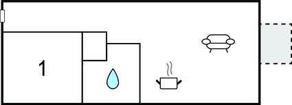 Opholdsstue/køkken - 1 Soveplads. (Sofa, madras eller lignende).
