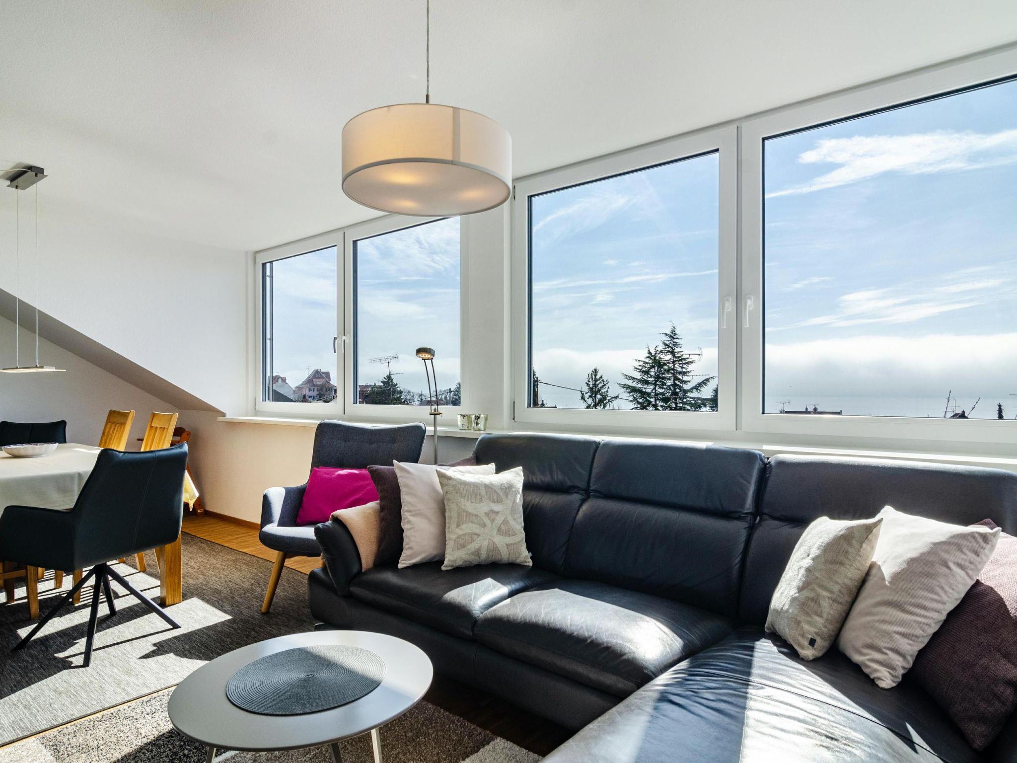 Your holiday flat with great lake view High-quality and bright holiday flat on the 1st floor with a wonderful view of the lake and the Alps and a small balcony.