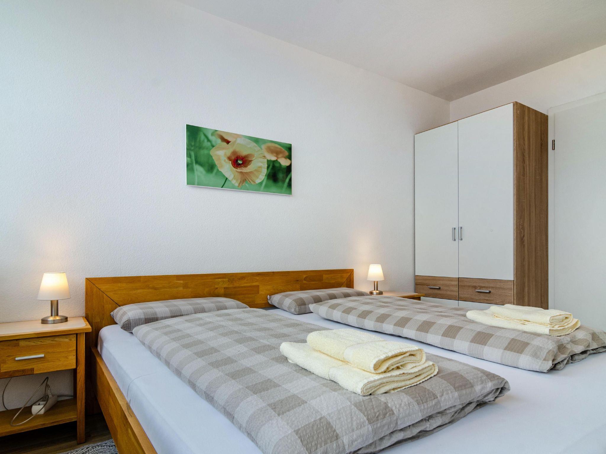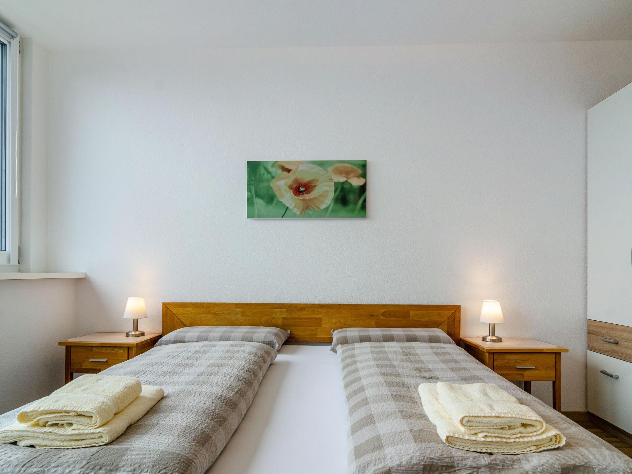 Large living and dining room with integrated eat-in kitchen and two separate bedrooms. approx. 80m² 2 separate bedrooms with double beds additional sofa bed in the large bedroom large living and dining room with fully equipped eat-in kitchen bathroom with shower and WC small balcony air conditioning electric blinds marvellous lake and alpine view separate entrance