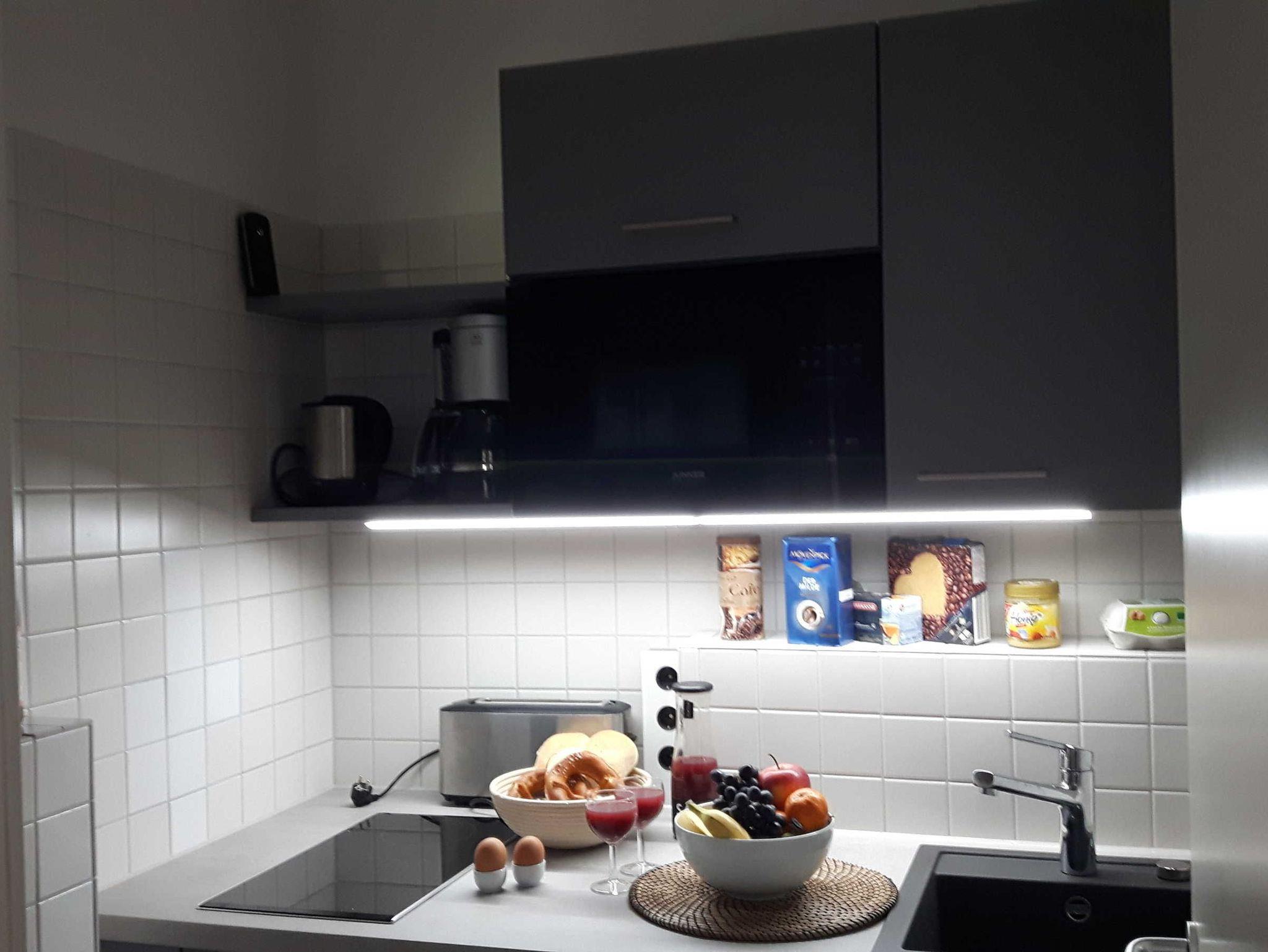 Die Wohnung ist modern und sehr geschmackvoll ausgestattet. Essecke mit Platz für vier. Sitzgarnitur aus Leder, kleine separate Küche, WC/Dusche und geräumiges Schlafzimmer mit 1,60 m breitem Bett. Kostenloses W-Lan, Kabel-TV, Blick auf Schloss und Schlossplatz sowie auf die historische Fachwerkhäuser. Sehr hohe Decken, hochwertiger Eichenholzparkettboden in Wohn- und Schlafraum sowie im Flur.