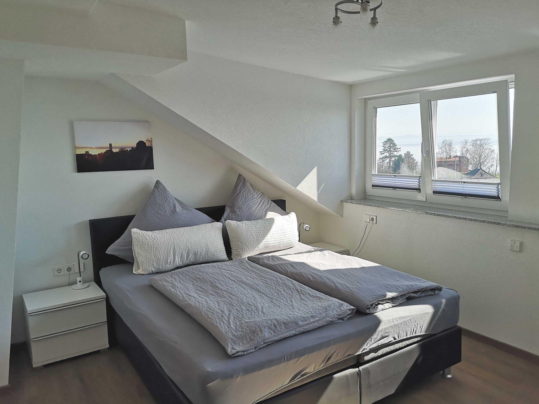 - Schlafzimmer mit Doppelbett und einem großen Einbauschrank sowie mit tollem Seeblick