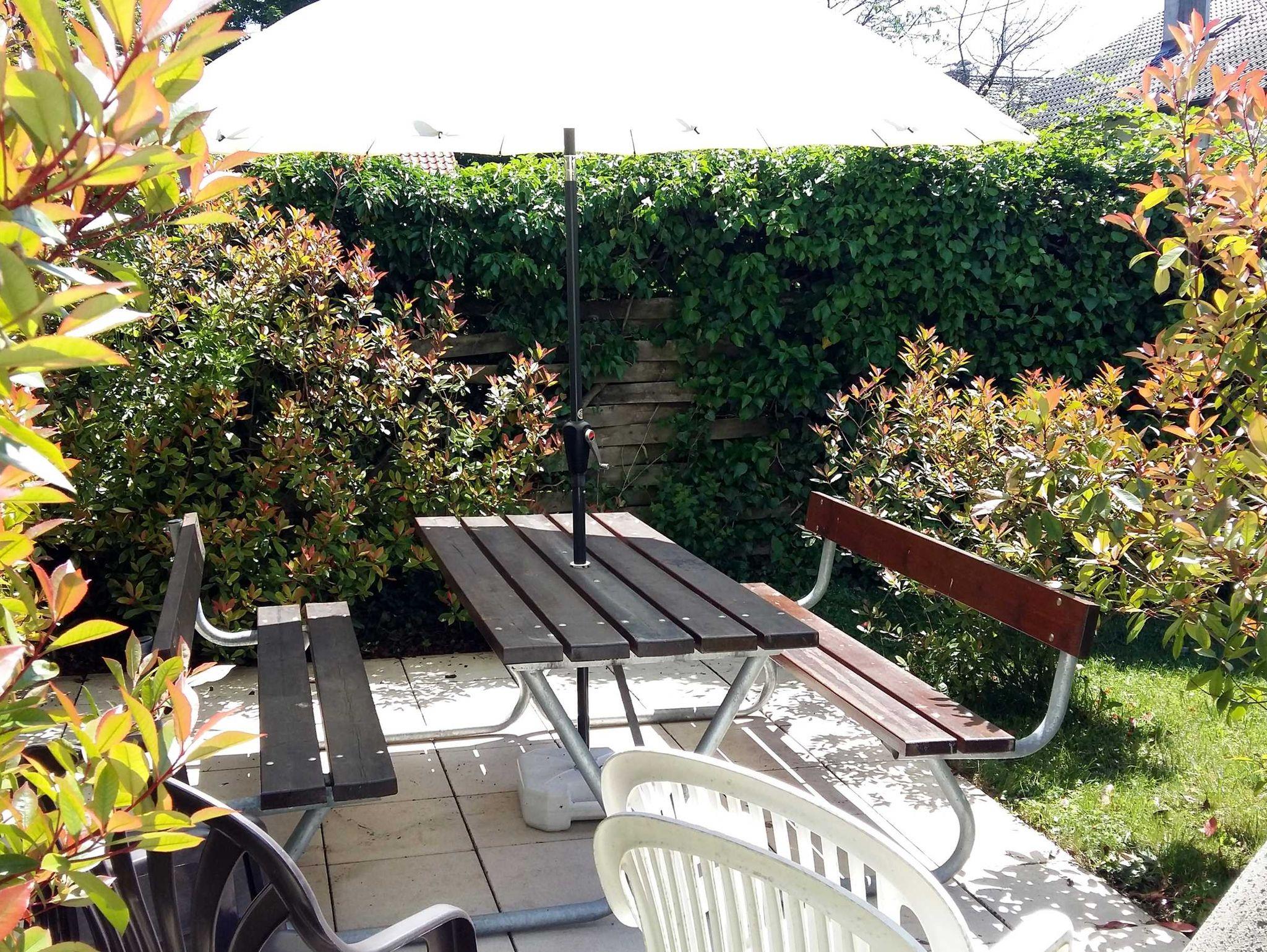 - ein abschließbarer Fahrradabstellraum (an Garage), kostenloses WLAN sowie ein gemeinschaftlicher Garten mit Grill und großem Tisch mit Sitzbank sowie Spielmöglichkeiten (Rutsche, Schaukel, Tischtennisplatte, etc.) stehen ebenfalls zur Verfügung