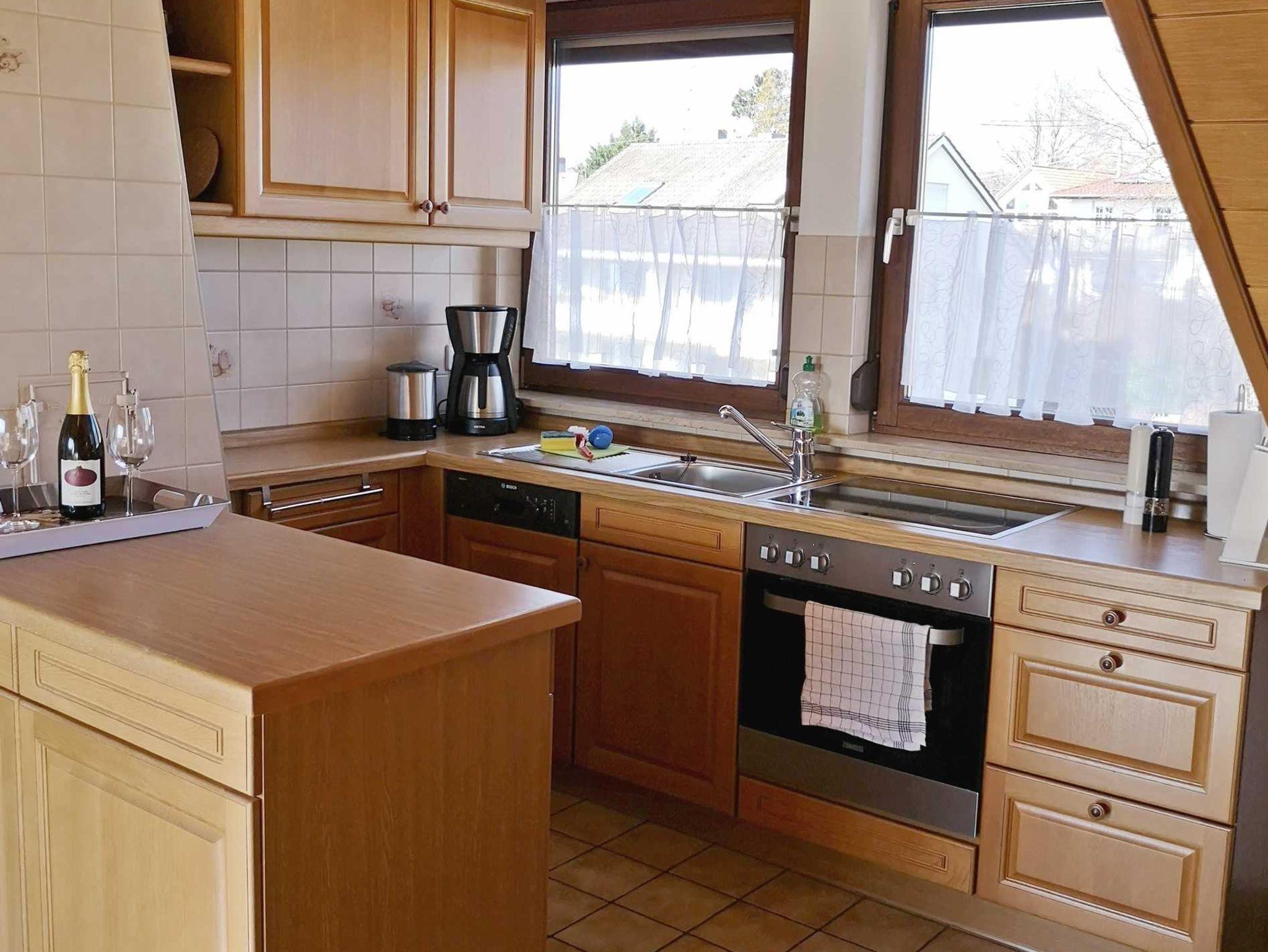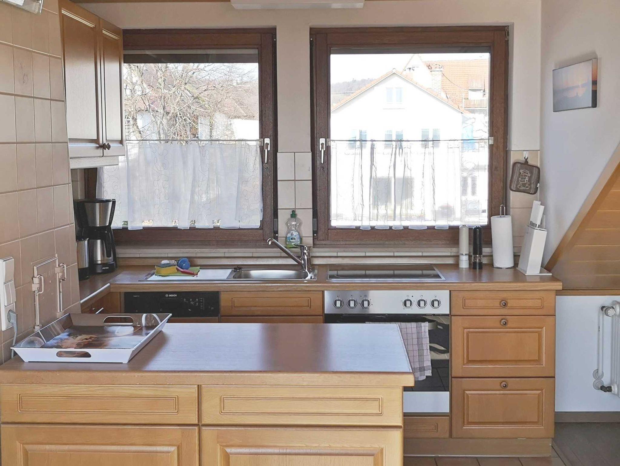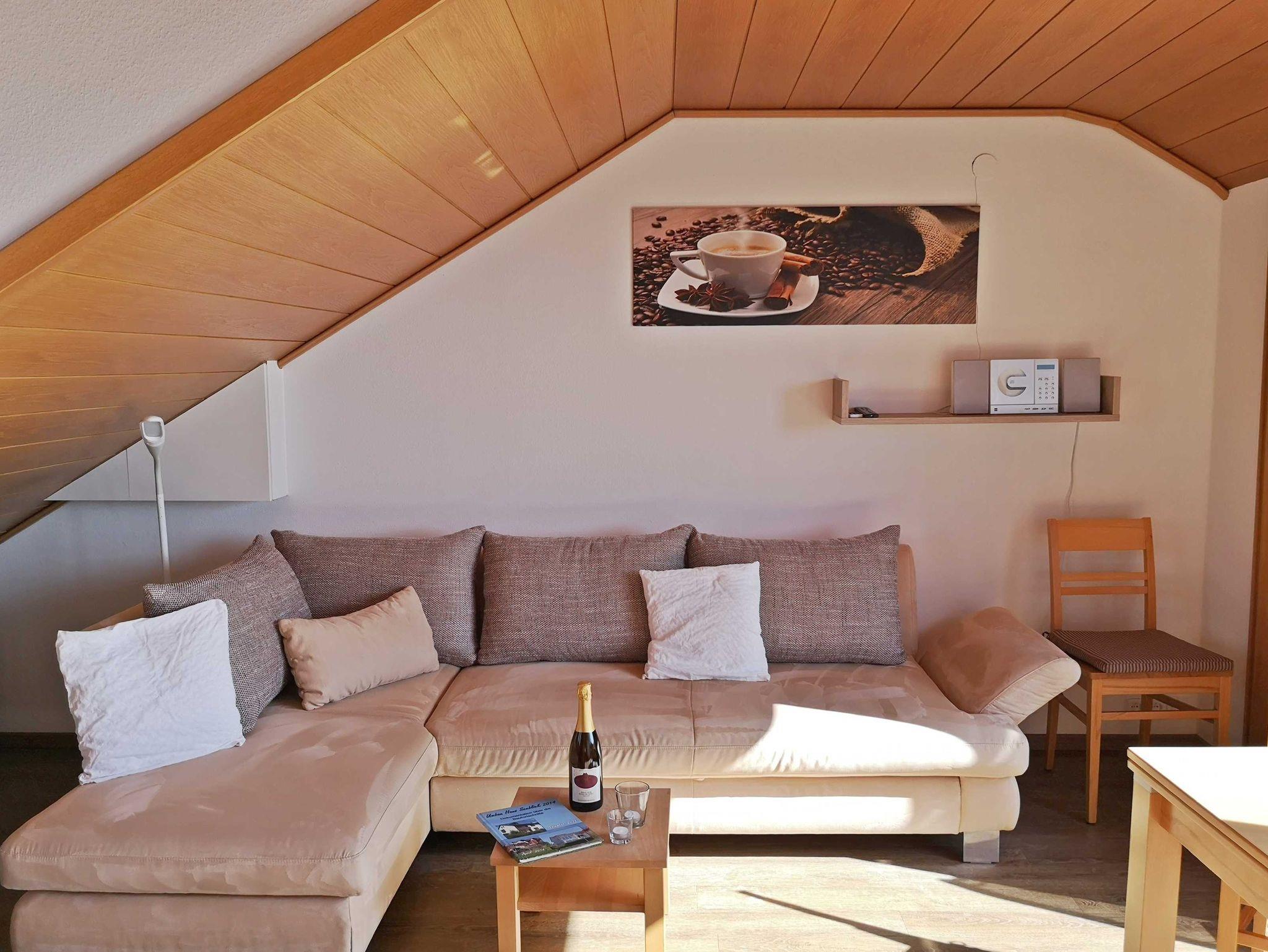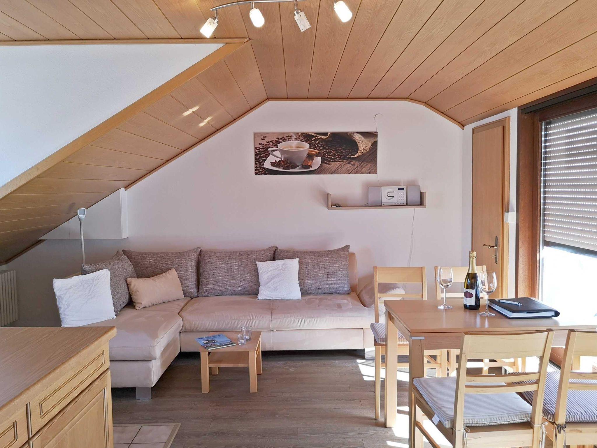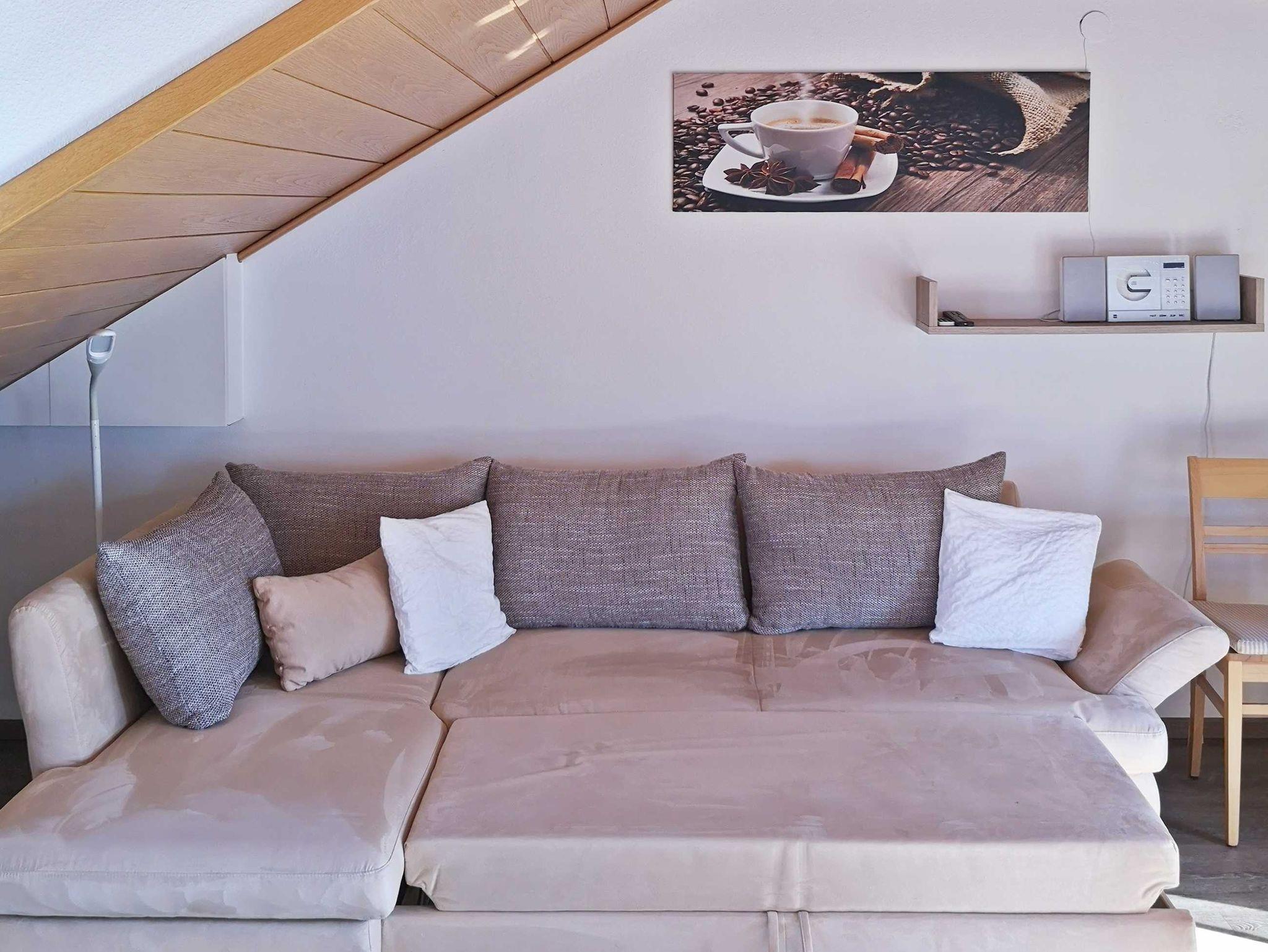 - offener Wohn-/Ess- und Kochbereich mit gut ausgestatteter Küche und Schlafsofa im Wohnzimmer