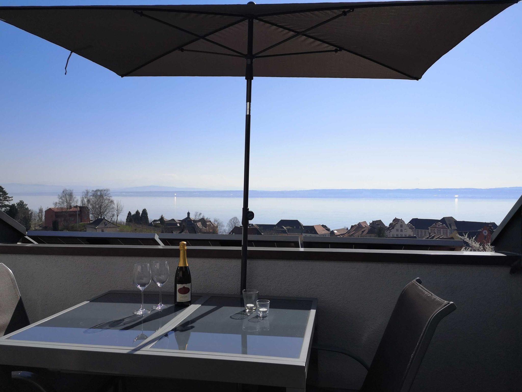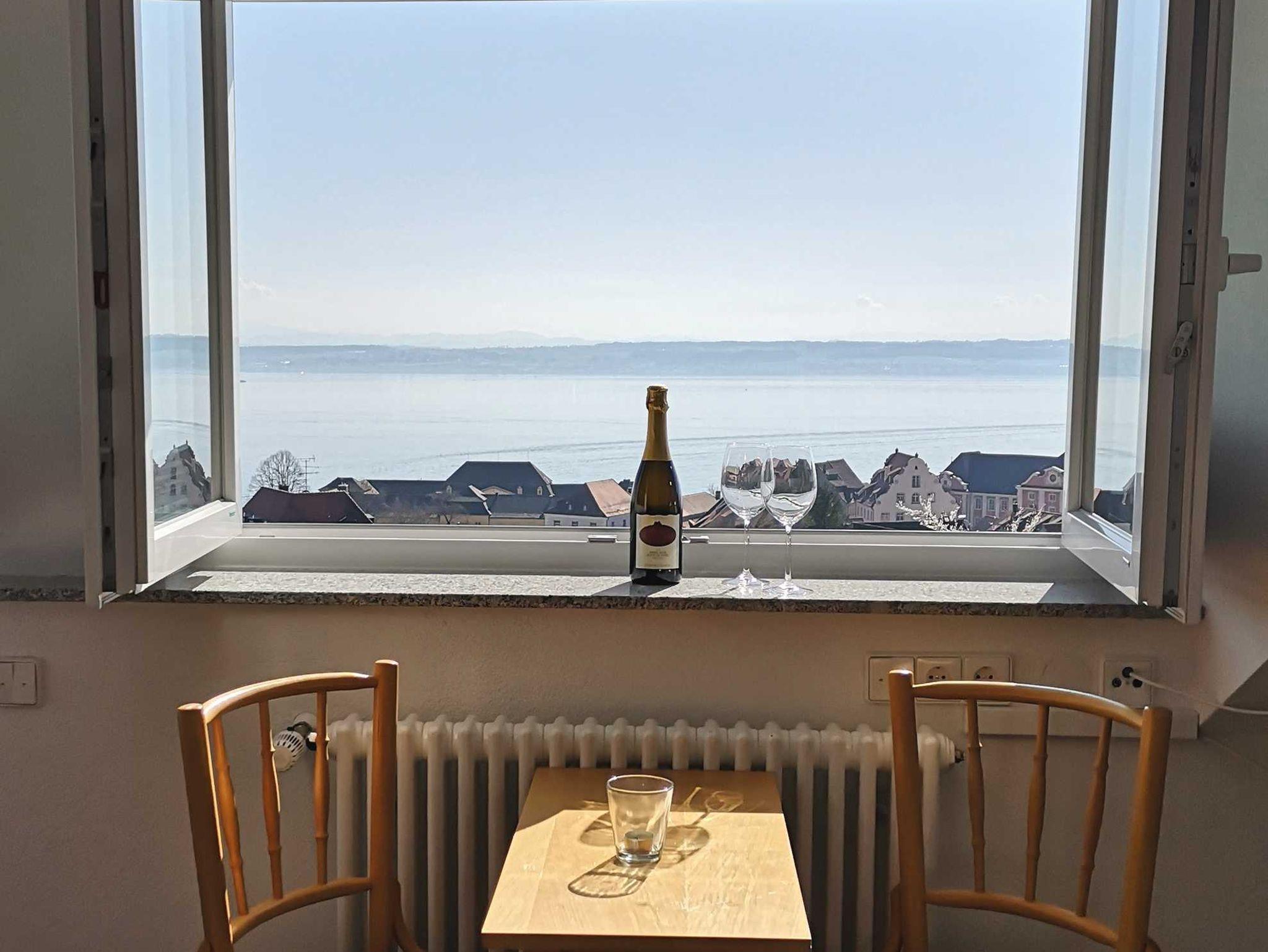 In ruhiger Lage oberhalb der Altstadt befinden sich unsere geräumigen, modern und freundlich eingerichteten Ferienwohnungen. Sie haben von allen Wohnungen einen herrlichen Blick über die Altstadt Meersburgs, den Bodensee und die Berge.