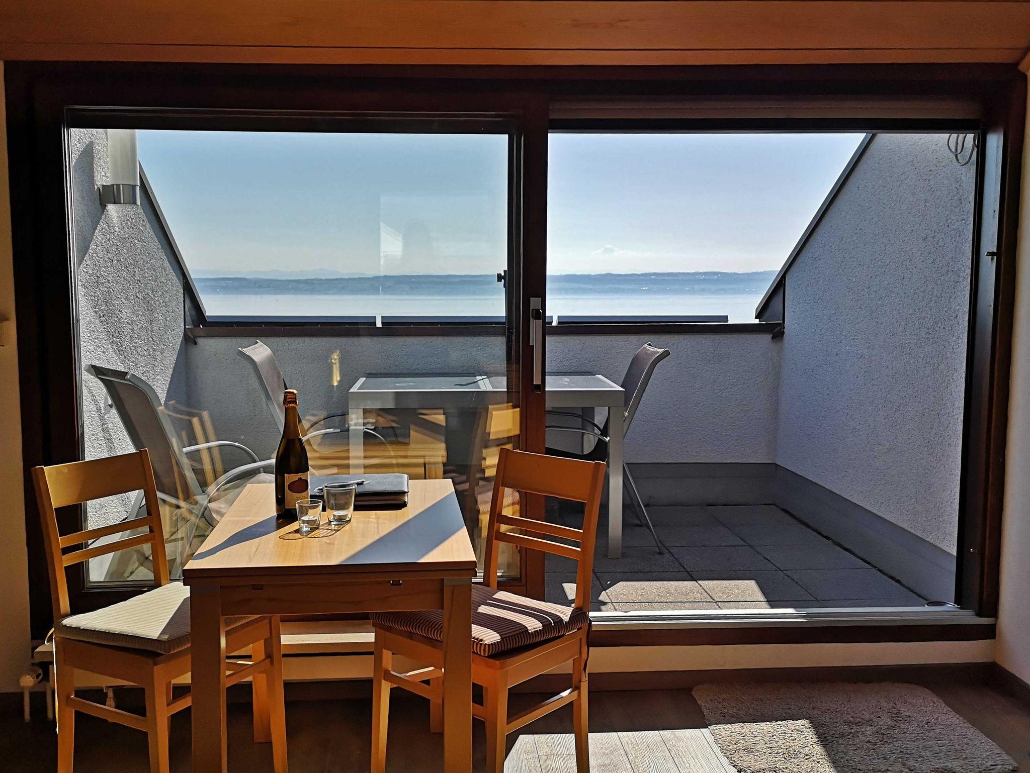 - 2-ZImmer-Wohnung mit ca. 42 m² Wohnfläche zzgl. Dachterrasse mit Blick über Altstadt Meersburg, Bodensee und Berge.