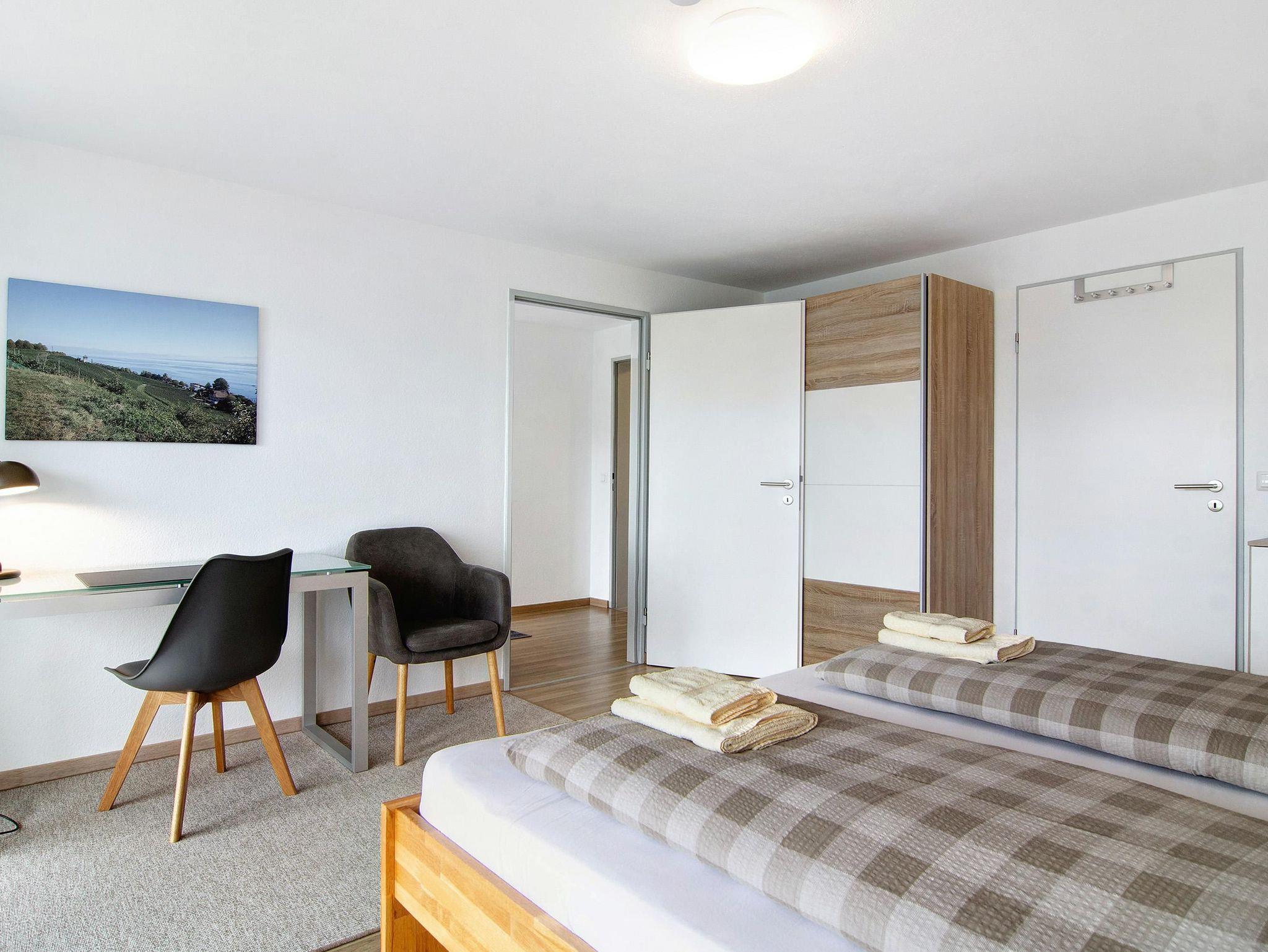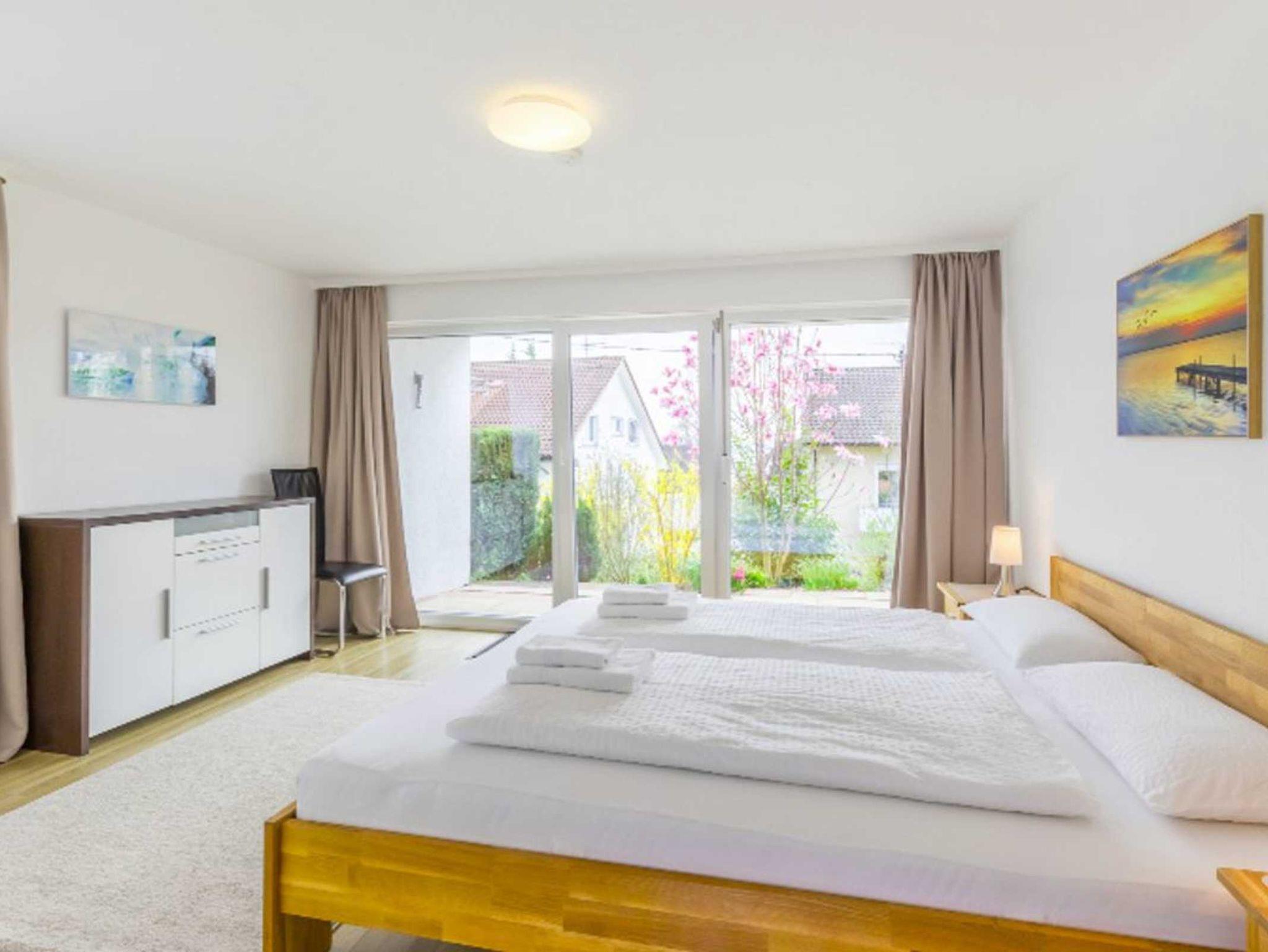Hochwertige, helle und ruhig gelegene Ferienwohnungen mit großer sonniger Terrasse (Fewo Gartenterrasse im Erdgeschoss) - oder Balkon und herrlichem See- und Alpenblick (Fewo - Seeblick im 1. Stock).