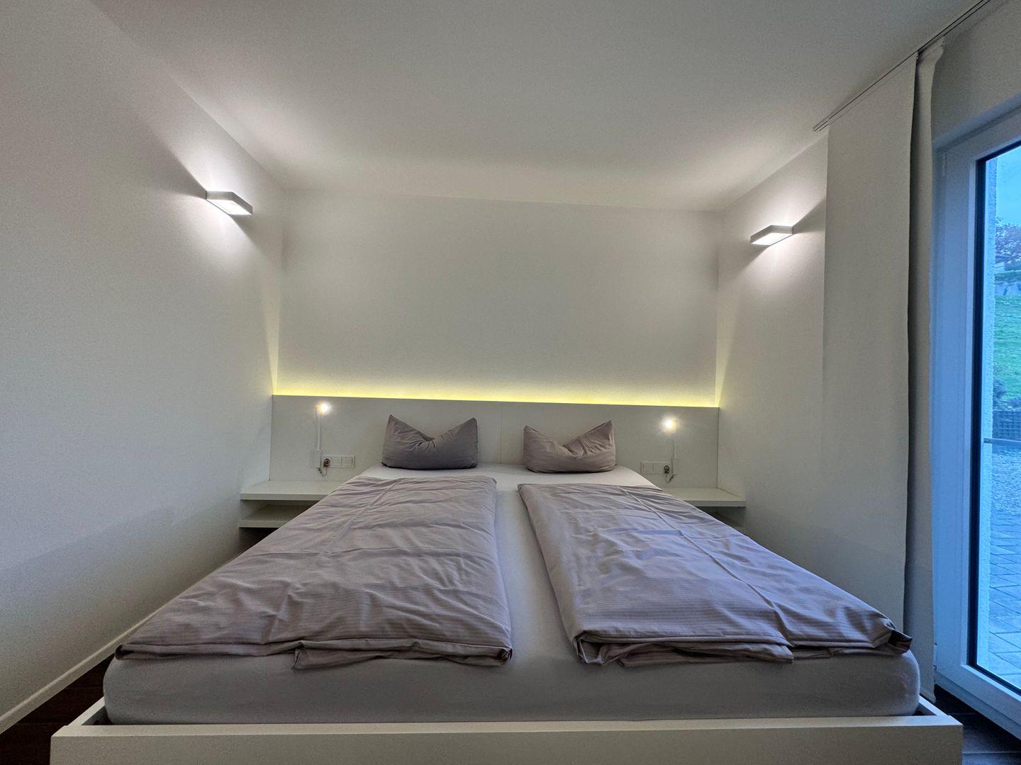 Das Stella Regia Apartment 2 bietet Ihnen auf 65 m² Wohnfläche modernes und komfortables Wohnen in direkter Seenähe in Meersburg. Das Apartment befindet sich im Parterre eines 2016 erbauten Gebäudes und eignet sich ideal für bis zu vier Personen. Es verfügt über insgesamt drei Zimmer, darunter zwei separate Schlafzimmer mit hochwertigem Vinylboden, die Ihnen ein angenehmes Schlafklima garantieren. Das Apartment ist besonders familienfreundlich, Kinder sind willkommen; Jugendgruppen sind hingegen nicht zugelassen.