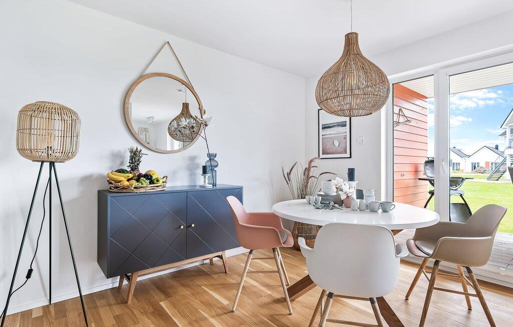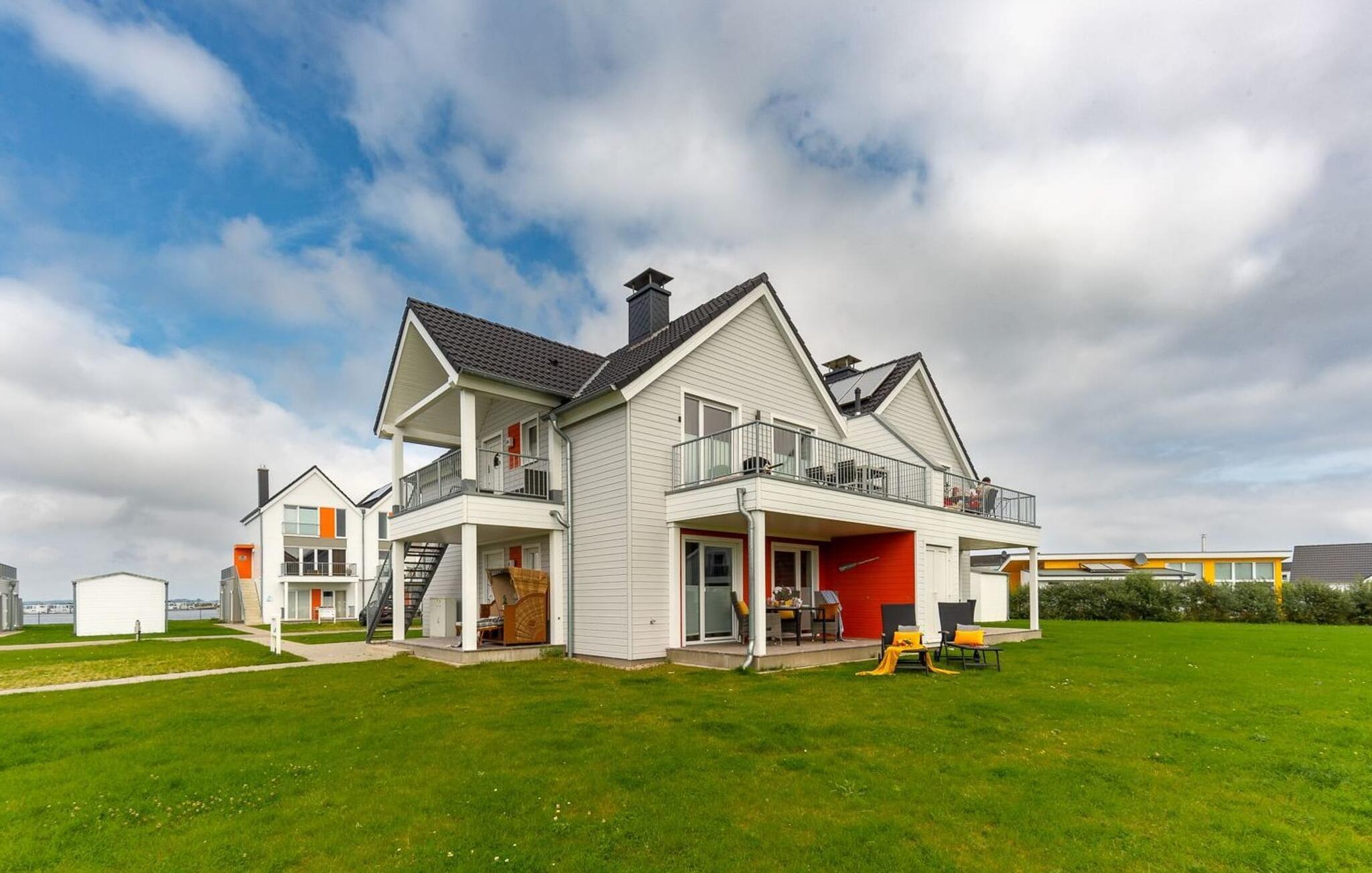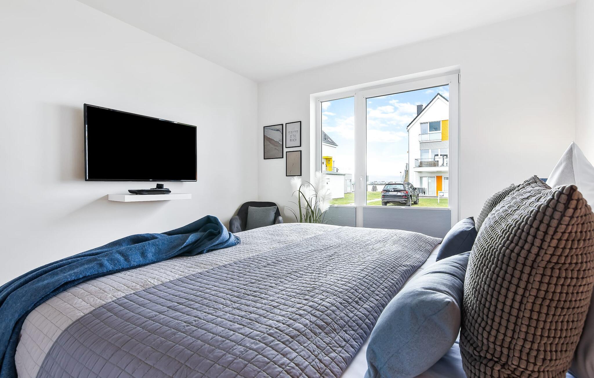 Ferielejligheden MeerVergnüge har med rette sit tvetydige navn! For I kan ikke have det MERE sjovt med jeres familie på ferie. MeerVergnügen ligger i stueetagen, med direkte adgang til haven via de to overdækkede solterrasser, hvorfra man delvist kan se Østersøen og havnen. Ren sommer- og kystfølelse er dagens orden her! Træd ind i den kærligt og komfortabelt møblerede, åbne stue/spisestue og føl jer godt tilpas fra første øjeblik. Sofaen, som byder på ekstra soveplads, og gyngestolen inviterer til at dase og se tv. Det tilstødende køkkenområde, udstyret med alt, hvad amatørkokken har brug for, vækker lysten til at lave mad sammen. I kan derefter spise sammen enten på den tilstødende, vindbeskyttede terrasse eller ved det moderne spisebord. Denne beslutning træffes normalt af vejrguderne. På den store terrasse foran stuen/alrummet finder I en Weber grill og en spisegruppe og på den anden en behagelig strandstol. Begge terrasser forudser hyggestunder ved Østersøen. Det ene soveværelse er udstyret med en dobbeltseng med boxmadrasser, fjernsyn og komfortabel lænestol. Det andet soveværelse er udstyret med to enkeltsenge med springmadrasser, et fjernsyn og også en komfortabel lænestol. Fra begge har I en fantastisk udsigt over havnen og I kan også se solnedgangen. Badeværelset er en lille wellness-oase! Et spabad og en infrarød sauna forsøder også de dage, hvor vejret ikke er rigtig godt og bliver nordisk. Så fremtryller pejsen i stuen en hyggelig stemning, som I kan understrege med musik fra internetradioen. Havnydelse er ikke mulig. Vores favoritsted: nyd lækre grillspecialiteter og nyd dem på terrassen i solskinnet... Bemærk venligst: OstseeResort Olpenitz er meget populært, og der bygges fortsat i parken. Ikke desto mindre kan I se frem til en 5-stjernet standard og et førsteklasses ophold. Byggeaktiviteterne kommer ikke til at forstyrre jer på ferien, og derfor gives der ikke yderligere afslag i prisen.