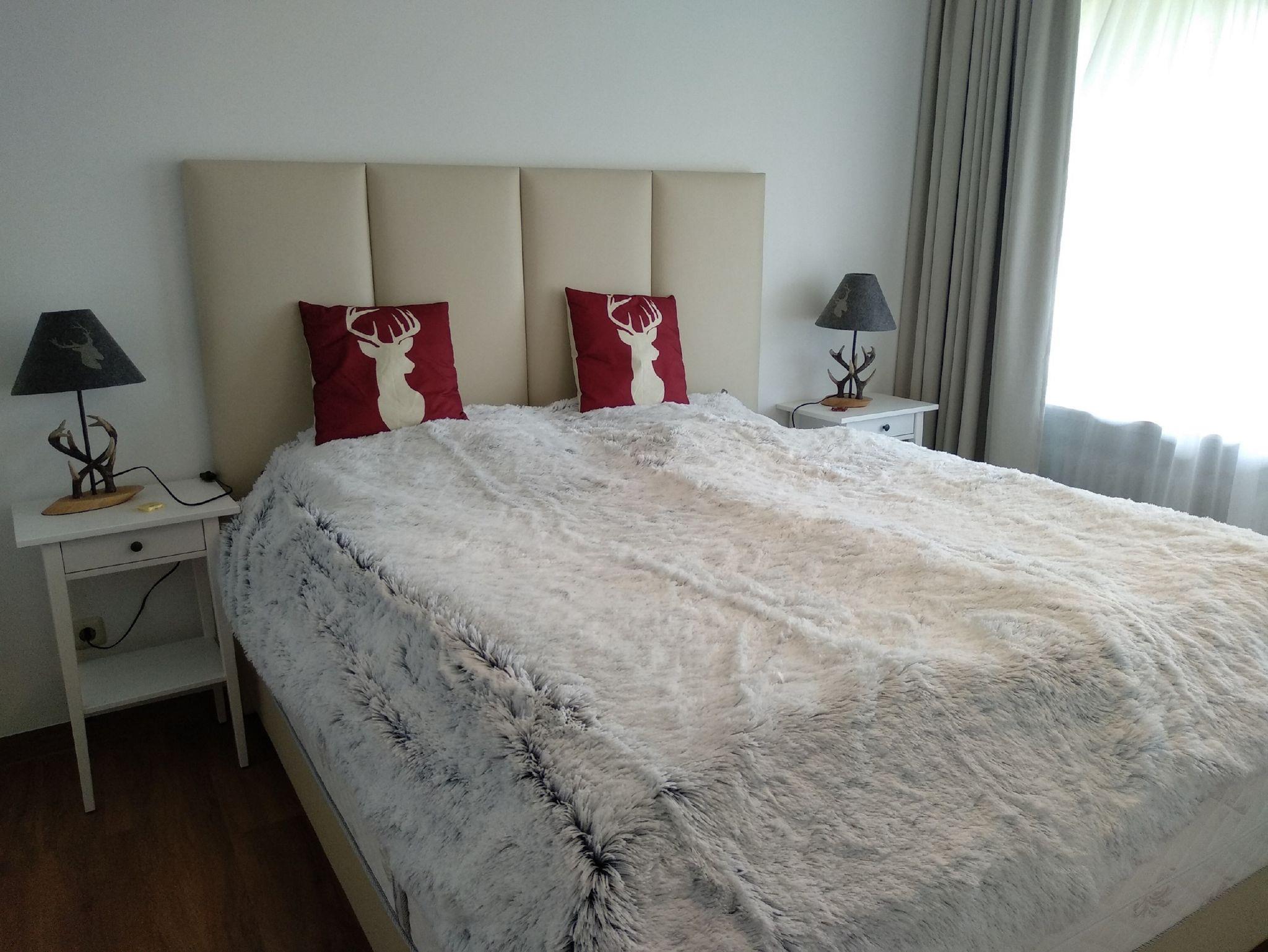 Das Schlafzimmer hat ein großes Boxspringbett (180x200 cm) in bewährter Hotelqualität, sowie ausreichend Schrankfläche. Der große, über die gesamte Wohnungslänge gehende Balkon lädt zum Entspannen ein. Auch Yoga kann dort praktiziert werden. Der Blick ist Richtung Klausenlift und Berge.