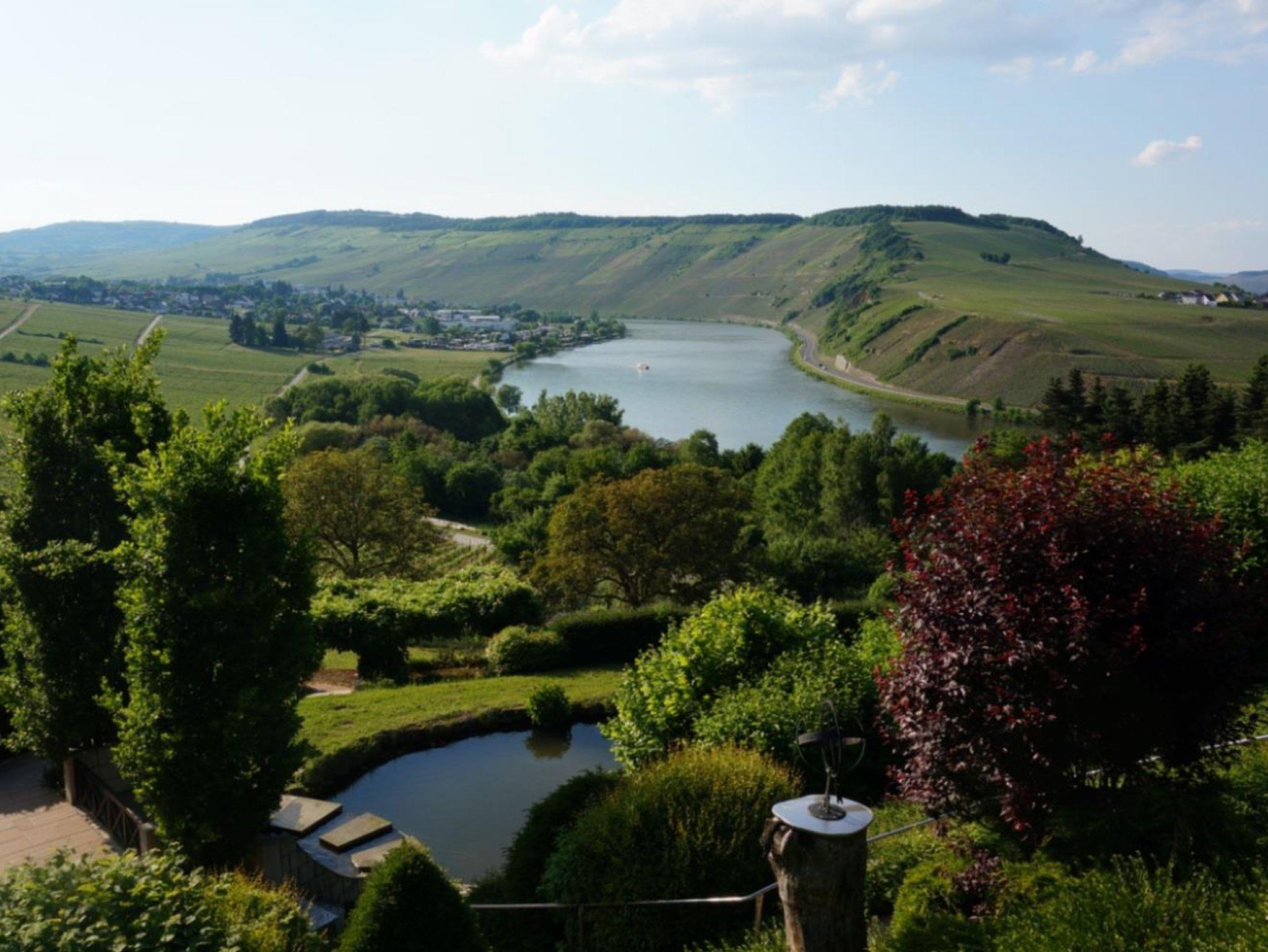 1. Etage, 2 Schlafzimmer je mit Duschbad, 1 Wohnzimmer mit Kochzeile und Balkon mit Blick auf die Mosel.