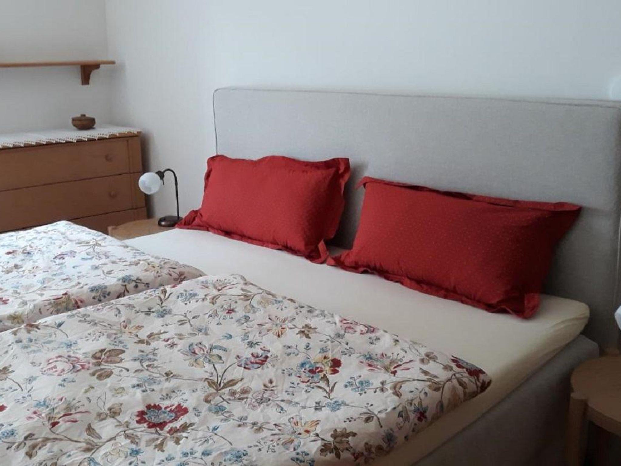 Das Ferienhaus bietet Íhnen im Obergeschoß eine Küche und Wohn-Esszimmer, ein Doppelschlafzimmer (Bett 1,80 x 2,00 m), Bad mit Dusche, Badewanne und WC (Bad ist nur durch das Doppelschlafzimmer erreichbar), Waschmaschine, Trockner und ein Balkon. Im Erdgeschoß befindet sich ein weiteres Doppelschlafzimmer, Bett: 1,60 x 2 m und eine separate Toilette mit Waschgelegenheit und eine Terrasse.