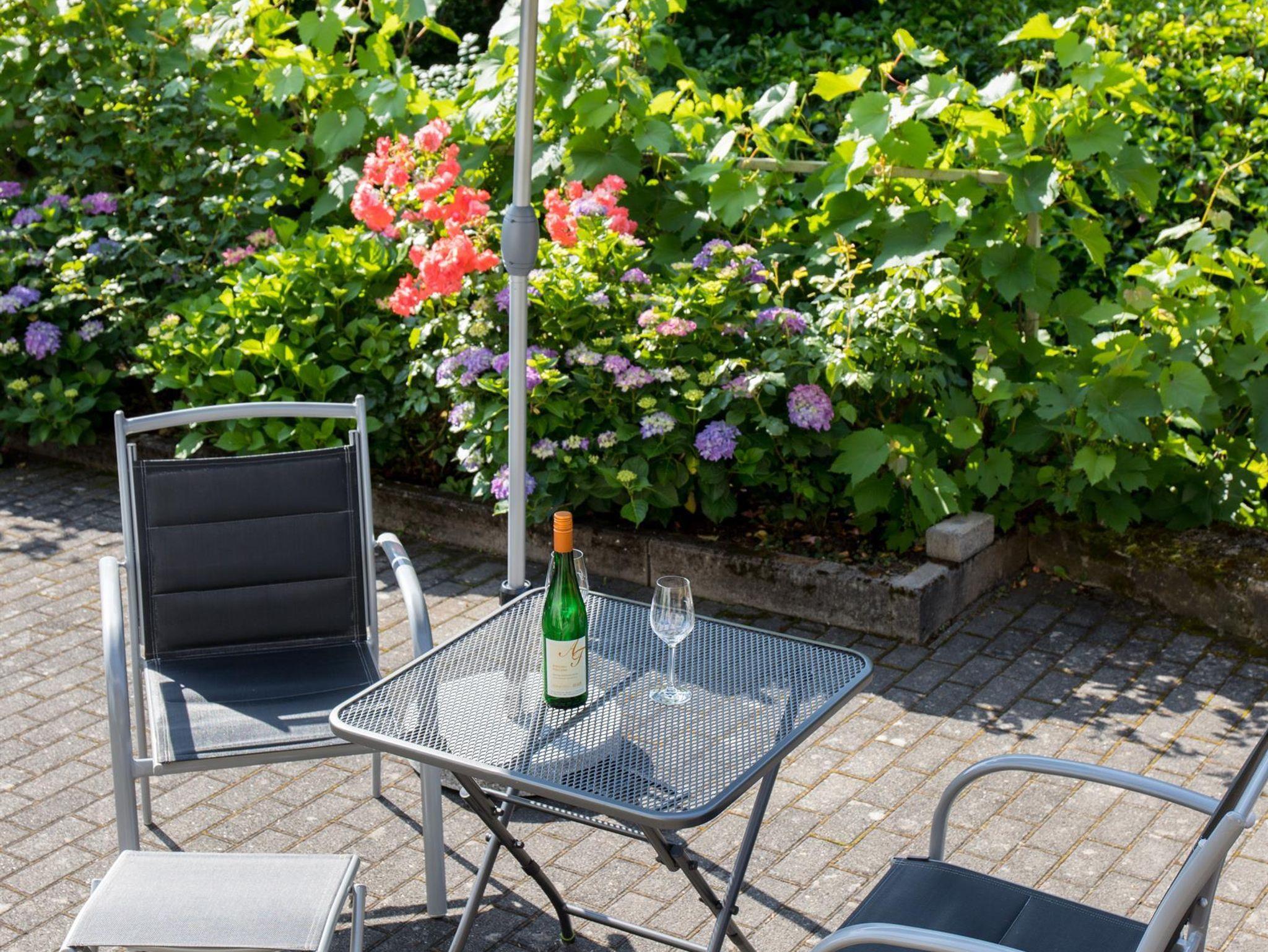 Auf einer Fläche von 55 qm finden Sie alles, was Sie für einen entspannten Urlaub brauchen. Eine vollausgestattete Küche mit gemütlicher Sitzecke zum Frühstücken. Sie finden folgende Geräte/Ausstattung: Esstisch, Kaffeemaschine, Reinigungsmittel, Ceran-Kochfeld, Backofen ausreichend Geschirr und Besteck, Kühl-, Gefrierkombination, Geschirrspüler, Toaster, Wasserkocher und Eierkocher. Im großen Wohn-/Essraum mit Kabel-TV können Sie Ihre Abende gemütlich mit einer Flasche Moselwein, aus eigener Produktion, ausklingen lassen. Das geräumige Schlafzimmer bietet Platz für zwei Personen und im großen Kleiderschrank finde alle Gepäckstücke ihren Platz. Bettwäsche und Handtücher, sowie Radiowecker sind vorhanden. Direkt neben dem Schlafzimmer finden Sie ein komfortables Bad mit Dusche/WC. Die Ferienwohnung erreichen Sie über Ihren separaten Eingang unseres Hauses. Bei schönem Wetter können Sie gerne auf einer Sitzgruppe im privaten Garten Ihre Freizeit genießen. Kostenlose Parkplätze sind direkt am Haus verfügbar. Das Rauchen in der Wohnung ist nicht erlaubt. Wifi ist für Sie eingerichtet.