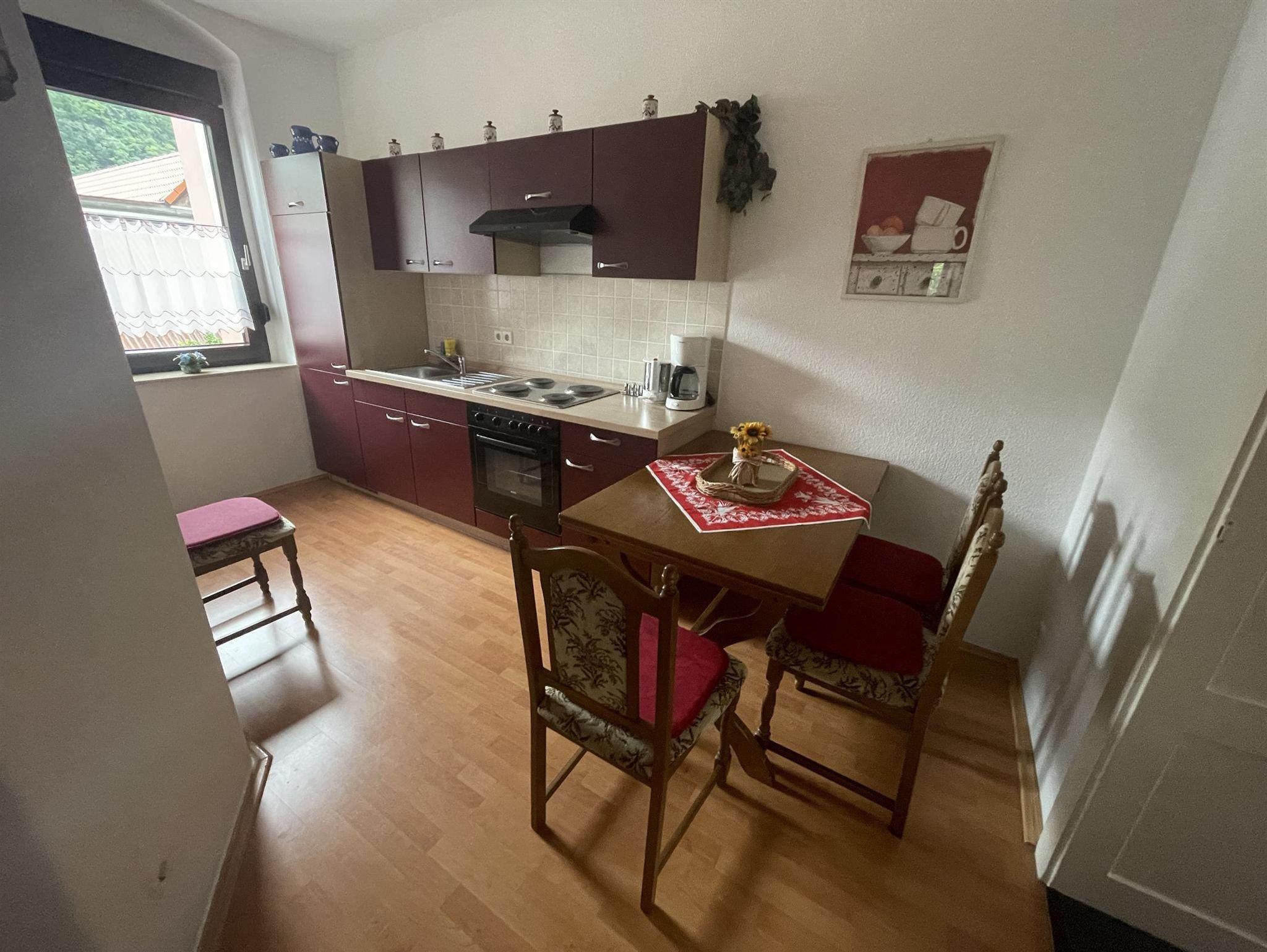 Die Ferienwohnung besteht aus einem großen kombinierten Wohn- und Schlafbereich (mit französischem Doppelbett 1,80 m x 2,00 m, Schlafcouch + gemütlicher Eckcouch mit Sessel, Hocker + Tisch) für 1-3 Erwachsene oder 2 Erw. mit 1-2 Kinder, einer Küche kpl. eingerichtet (mit Eßtisch + Sitzgruppe) sowie einem Badezimmer (mit DU/WC + Fenster).