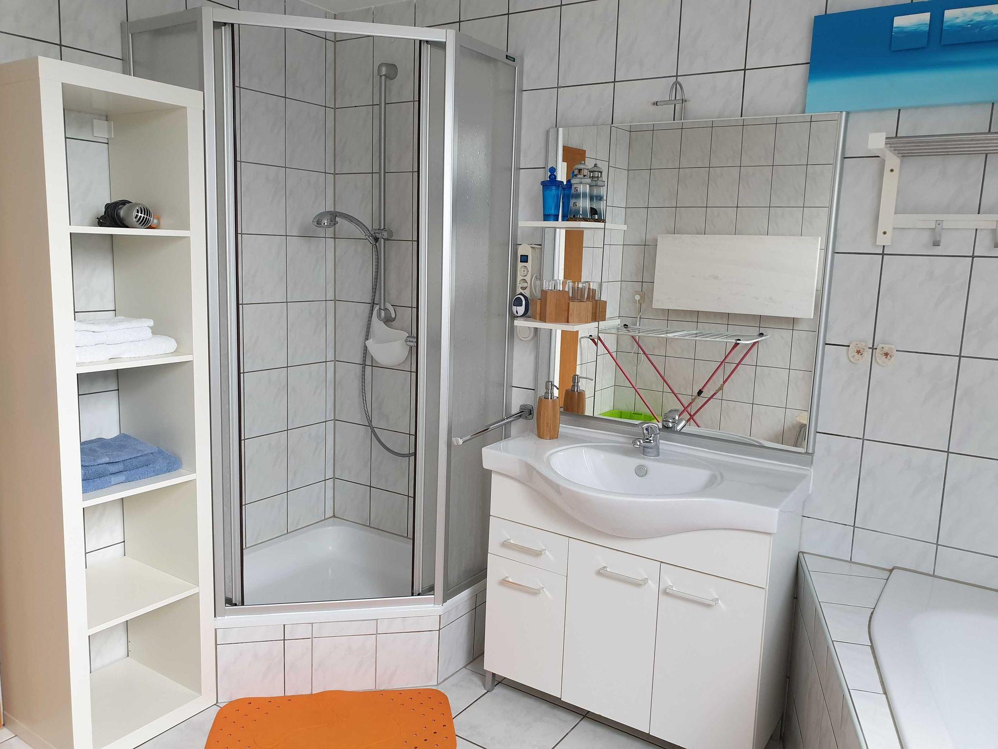 Im Badezimmer finden Sie eine Wanne, eine Dusche, Waschbecken, WC, eine Waschmaschine und Wäschetrocknungsmöglichkeiten. Toilettenpapier ist ausreichend vorhanden. Handtücher werden bereitgelegt.