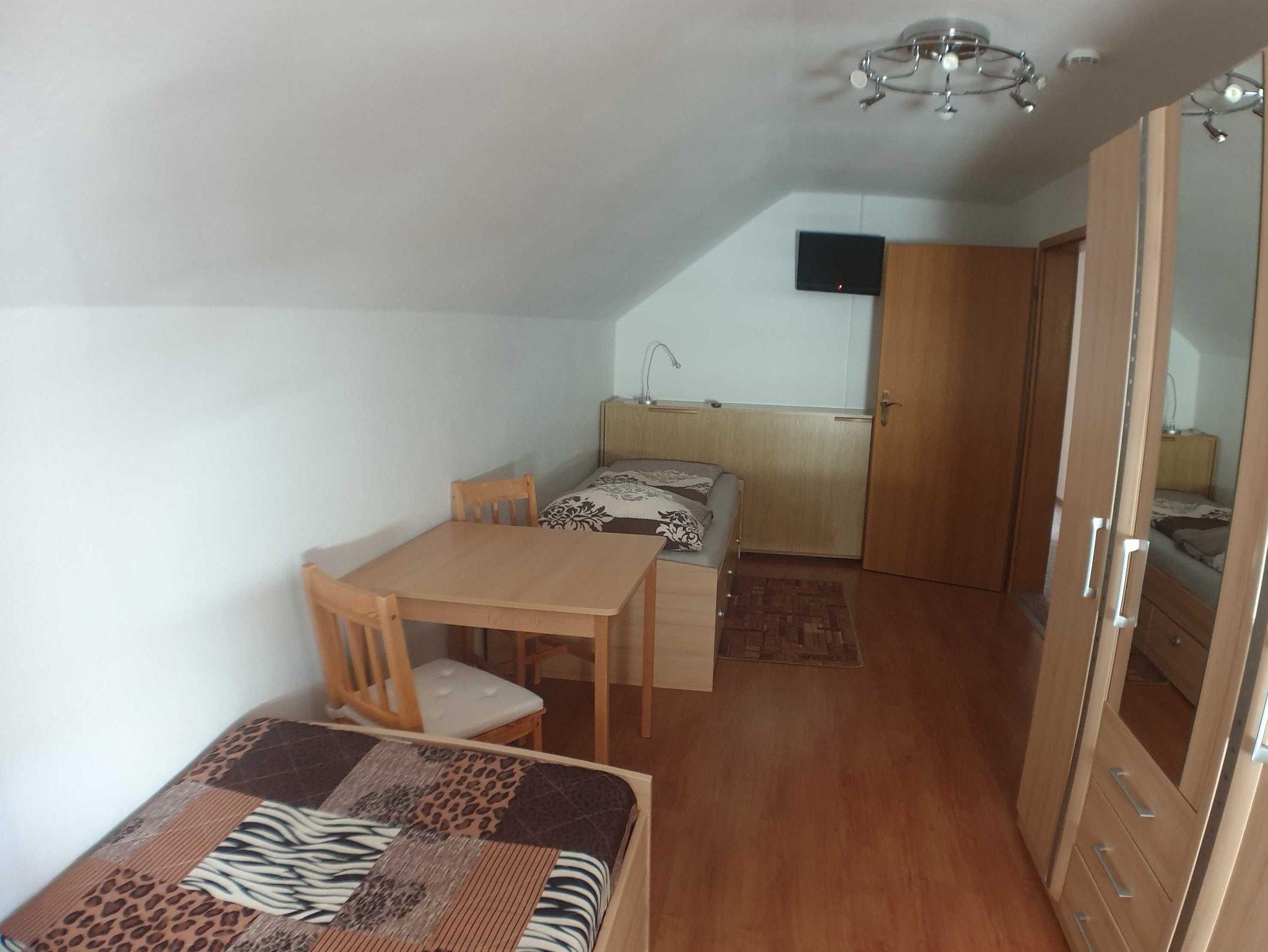 Die 89 m² große Ferienwohnung befindet sich im Dachgeschoß unseres Wohnhauses in einer sehr ruhigen Lage am Rande eines Wohngebietes mit freien Blick in die Natur.