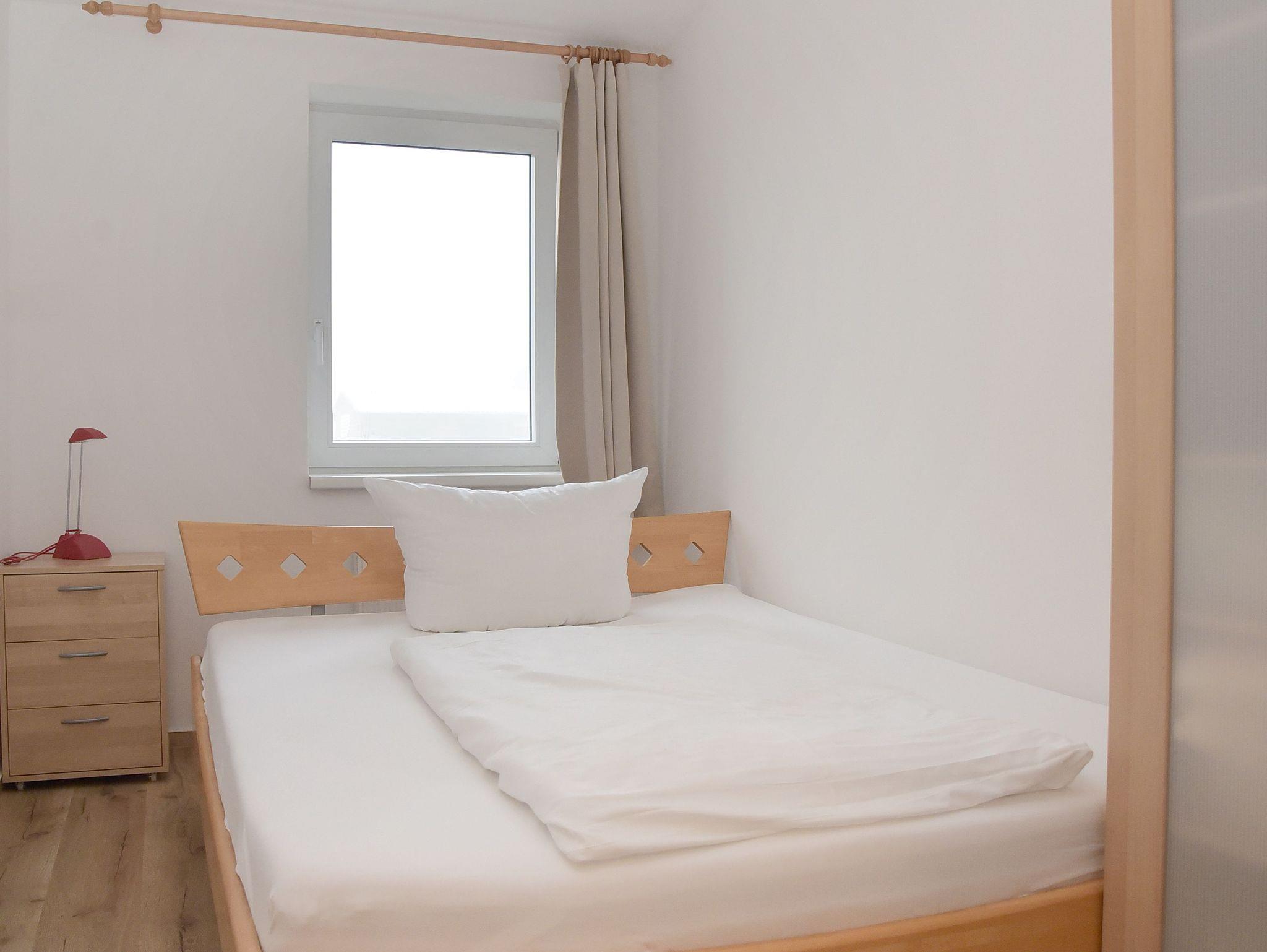 Das erste Schlafzimmer ist mit einem Doppelbett und Kleiderschrank ausgestattet. Das zweite Schlafzimmer verfügt über ein ausziehbares Einzelbett. Auf der unteren Hälfte kann eine zweite Person schlafen.