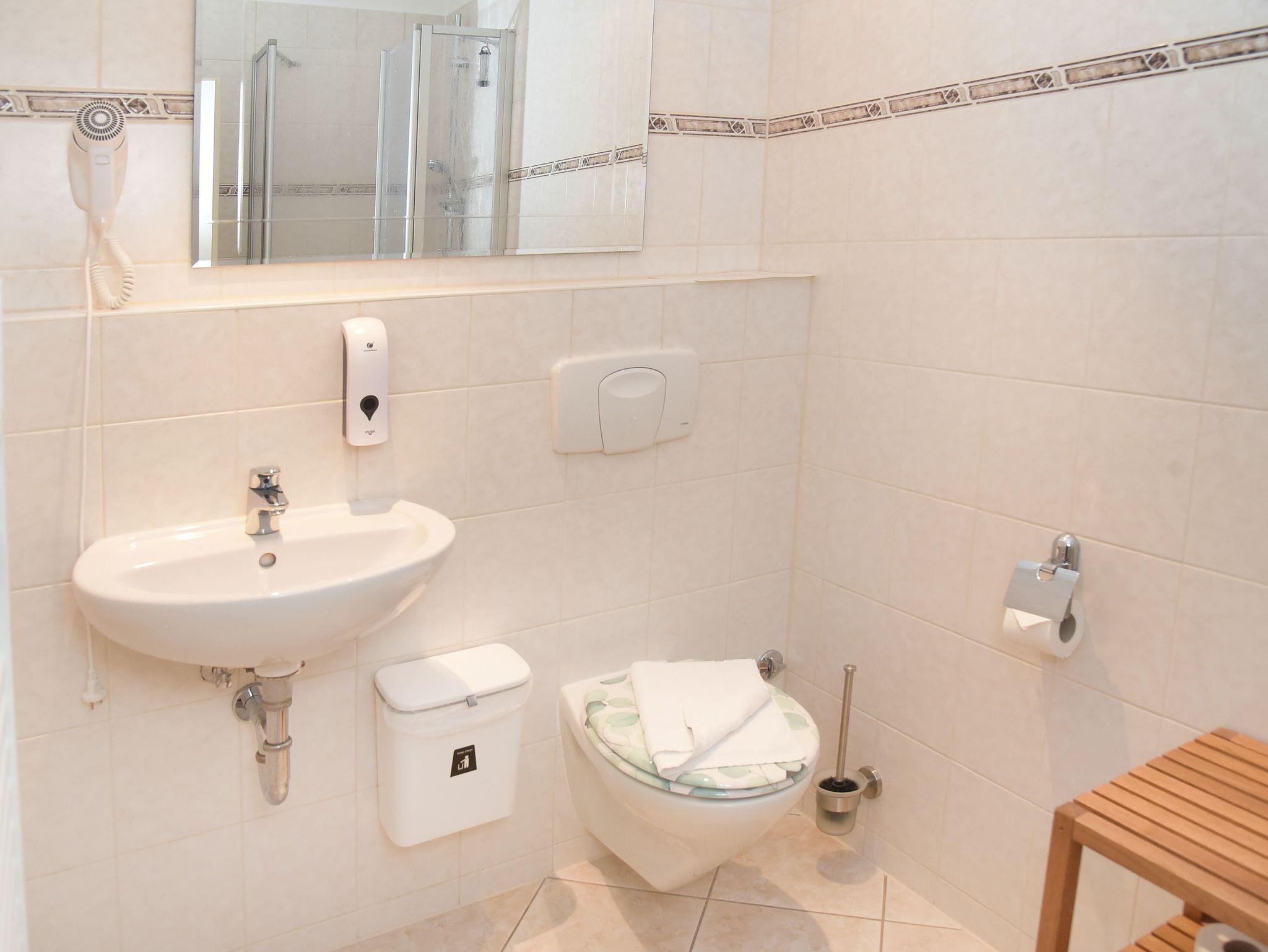 verfügt über eine Dusche und einen Haartrockner.