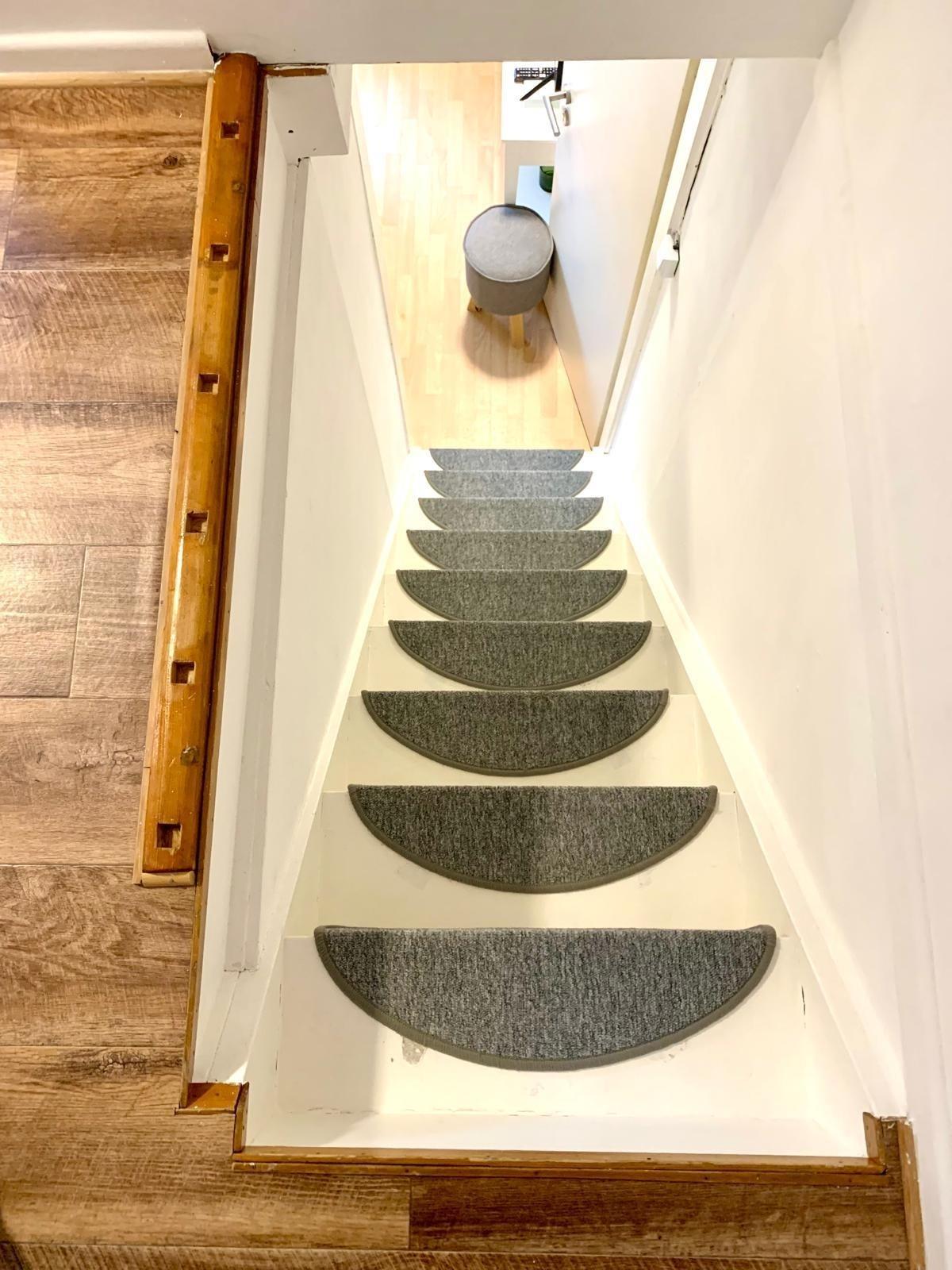 Souterrain: Vom Flur führt eine Treppe ins Untergeschoss. Hier im Souterrain ist die Küche (Stehhöhe nur 183 cm) und das Duschbad mit WC (Stehhöhe nur 190 cm) untergebracht. Beim Durchqueren der Durchgänge muss man den Kopf kurz einziehen, das solltet ihr wissen.