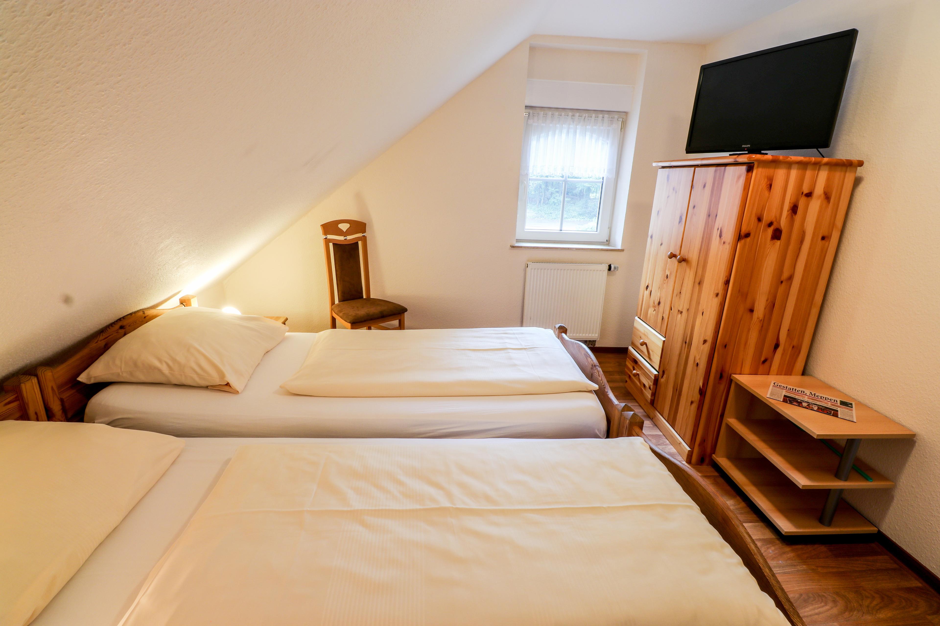 Dieses ist eines von zwei Doppelzimmer, die direkt nebeneinander liegen mit Blick auf den Hof. Die Zimmer befinden sich im 2.OG, sind dennoch gut zu erreichen. Sie können dort zu viert oder auch nur zu zweit übernachten. Beide Zimmer haben zusammen einmal Dusche mit WC. Der Preis bezieht sich auf 2 Personen in ein Zimmer !!!
