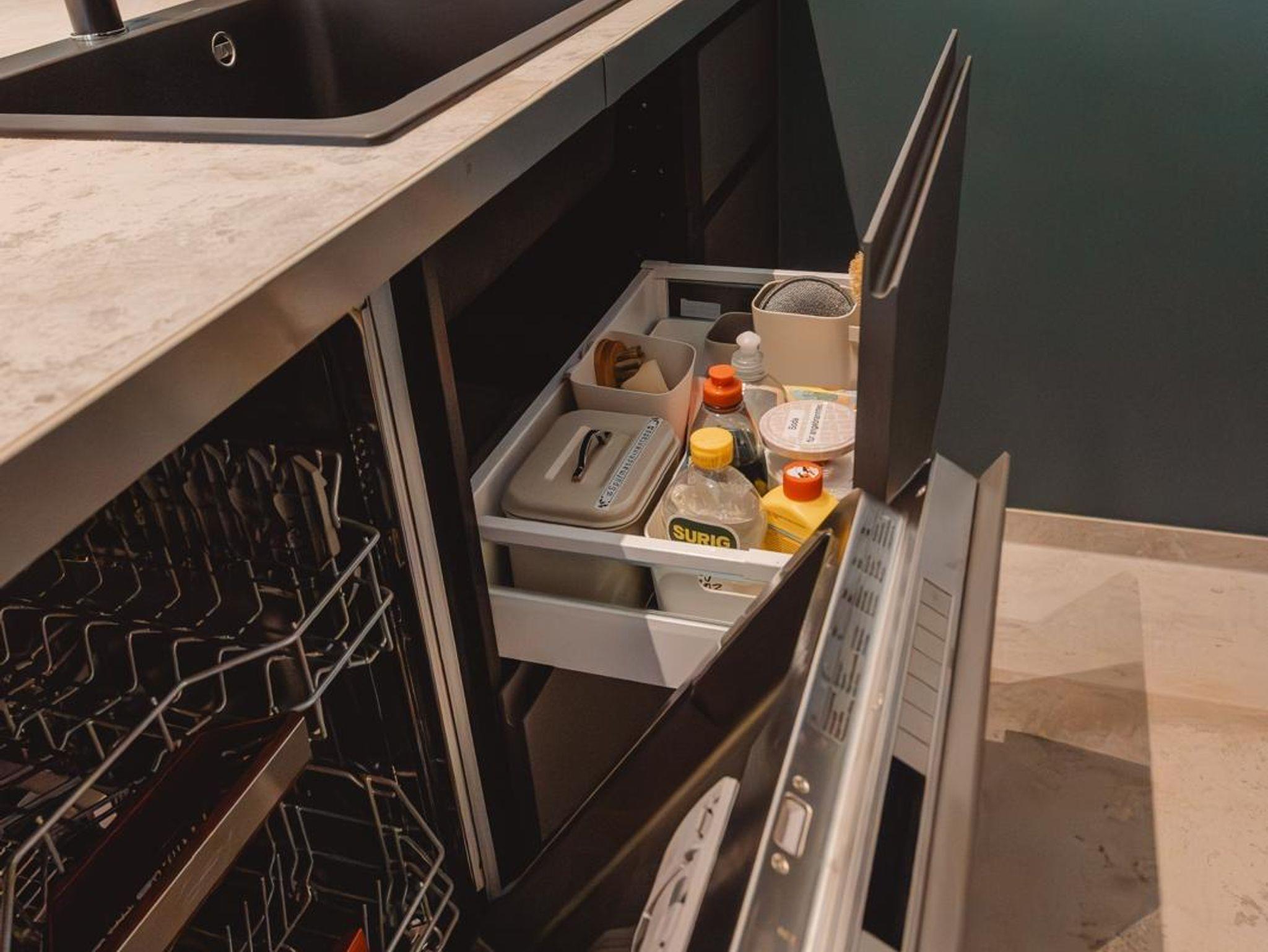 *Küche: Die moderne Küche ist voll ausgestattet mit einer großen Kücheninsel und unteranderem Induktionsfeld mit Abzug, Backofen, Mikrowelle, Geschirrspüler, Kühl-/Gefrierkombination und Kaffeevollautomat
