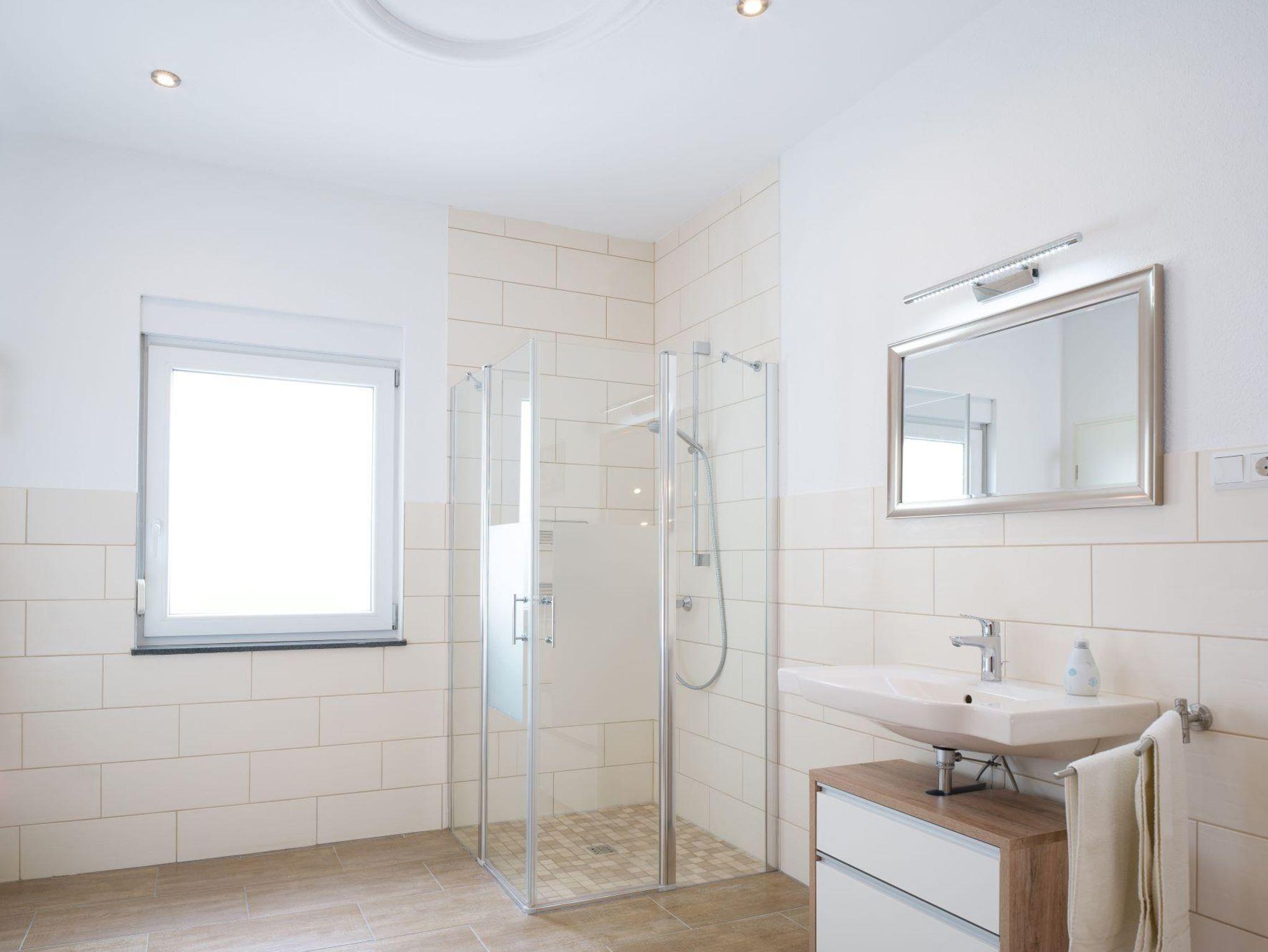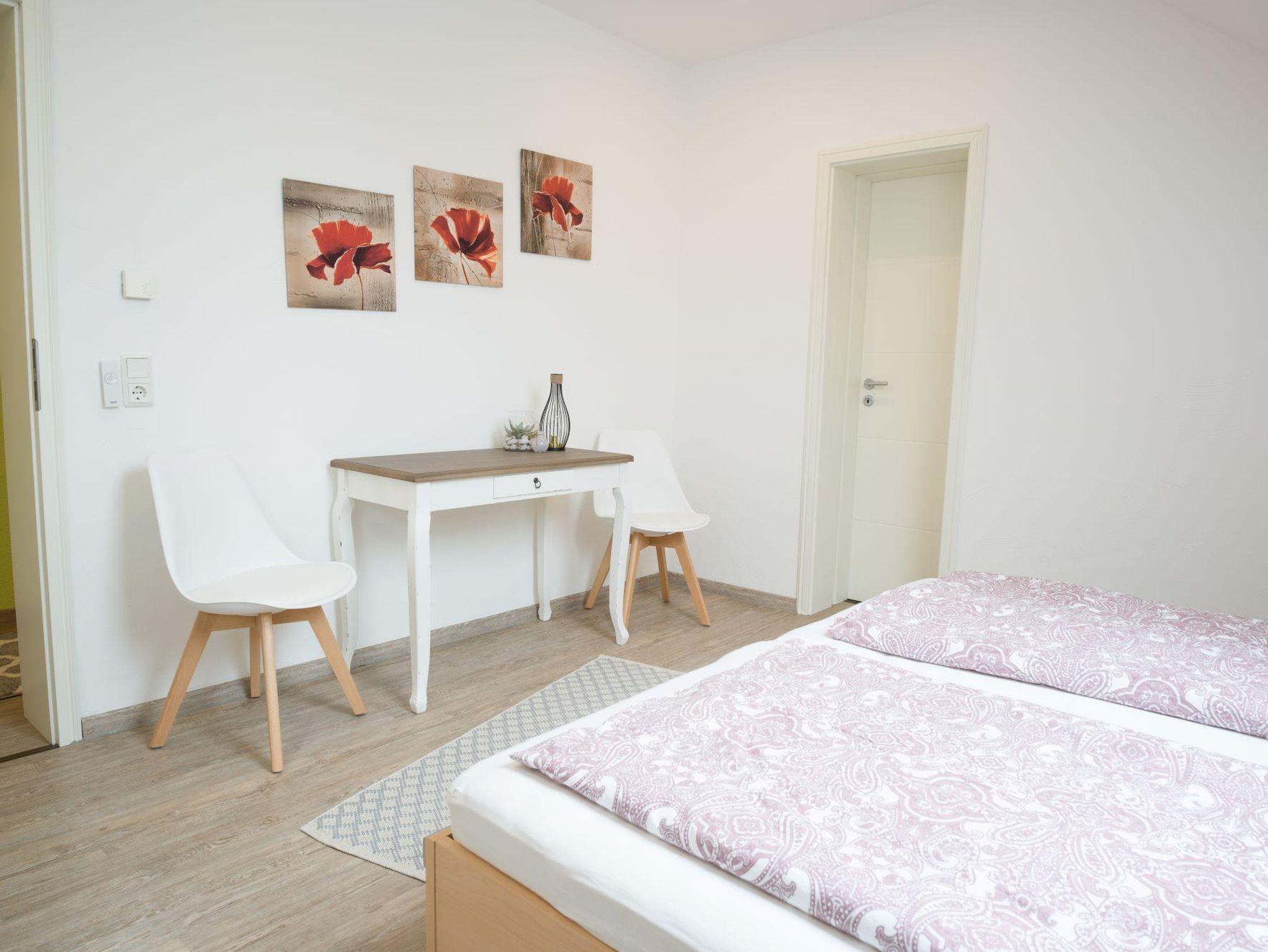 Neu renoviertes gemütliches Einfamilienhaus, bis zu 3 Doppelschlafzimer, 1 Bad mit Dusche und Wanne im Obergeschoss, im Erdgeschoss: 1 Duschbad, vollausgestattete neue Küche mit: Kaffevollautomat, Spülmaschine, Wasserkocher, Toaster, Mikrowelle, Backofen, Kochfeld, Wohnbereich mit großem Sofa, TV, Essbereich mit Tisch und 6 Stühlen, Radio, WLan, Nichtraucher, Balkon mit Sitzgarnitur und Treppe zum Grillplatz, Grillplatz mit Sitzmöglichkeit im Außenbereich. Fahhradabstellmöglichkeit unter Balkon, nicht einsehbar.