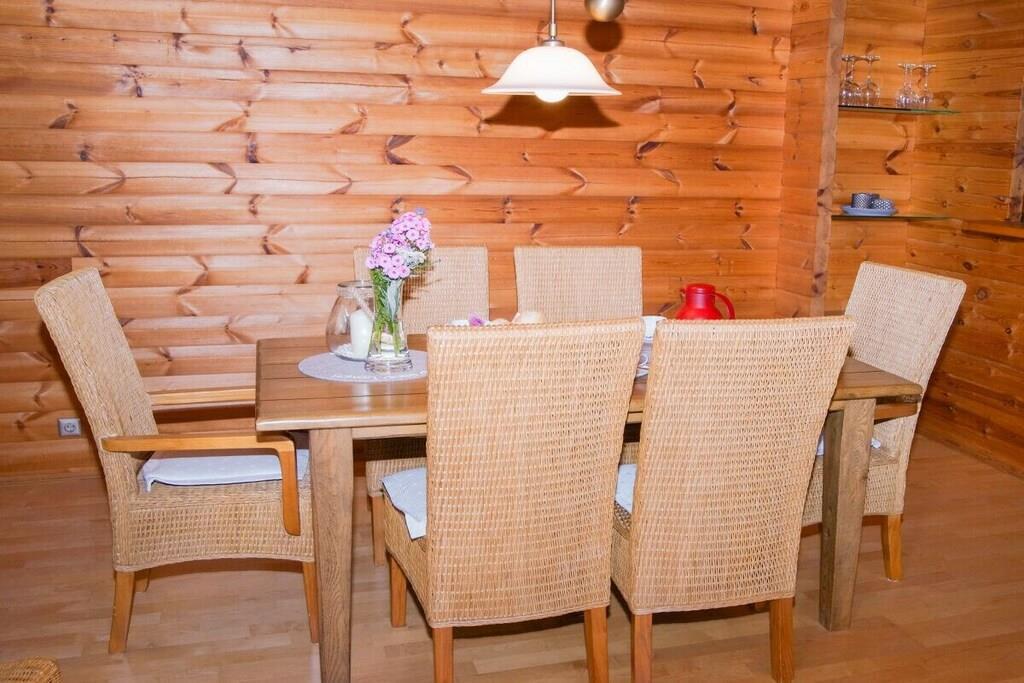 Mit viel Liebe zum Detail in typischer Holzoptik und hochwertigem Interieur eingerichtet, lädt Sie unser Chalet zum Träumen ein. Sauna, Kamin, 1,5 Bäder, drei Terassen und ein großer eingezäunter Garten mit Grillmöglichkeiten warten auf Sie (Kaminholz und Grillkohle inklusive). Sehr gepflegte Einbauküche komplett ausgestattet mit Ceranfeld, Backofen, Kaffee- und Kapselmaschine (Tchibo Cafissimo), Spülmaschine, großer Gefrierschrank und umfangreiche Küchenutensilien Für unsere kleinen Gäste warten ein Sandkasten und ein großes Trampolin neben einer Sammlung von Gesellschaftsspielen, die natürlich auch von unseren großen Gästen genutzt werden können :-).