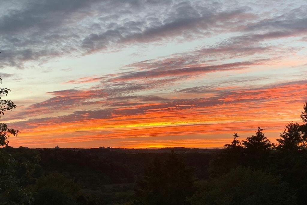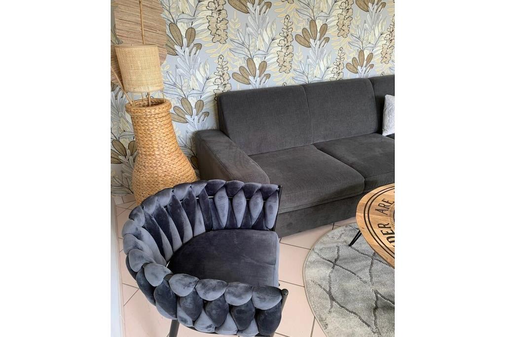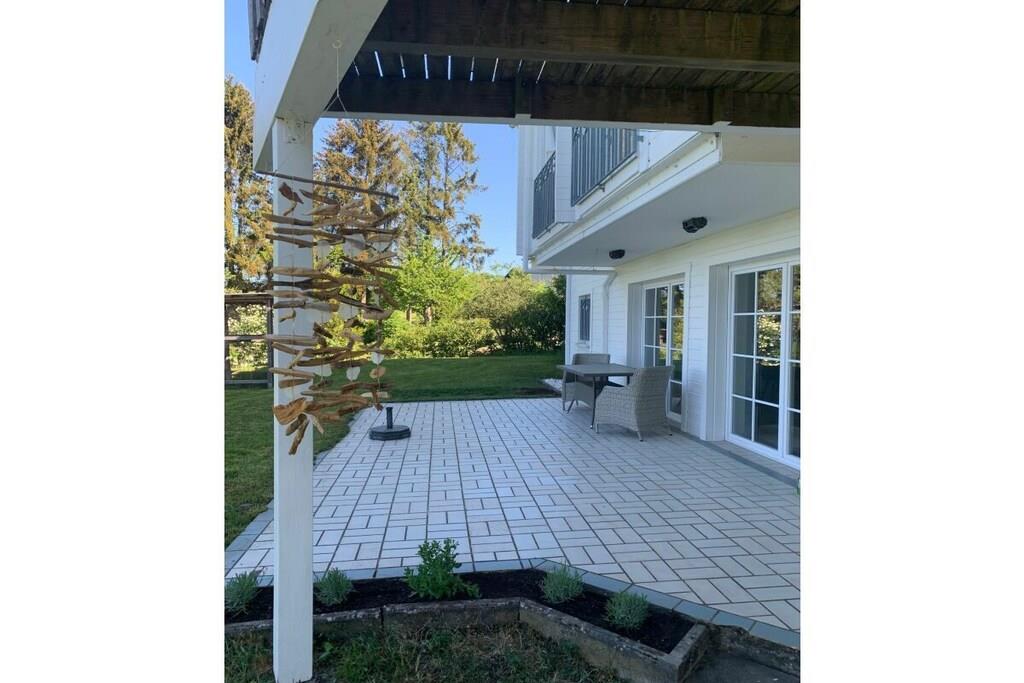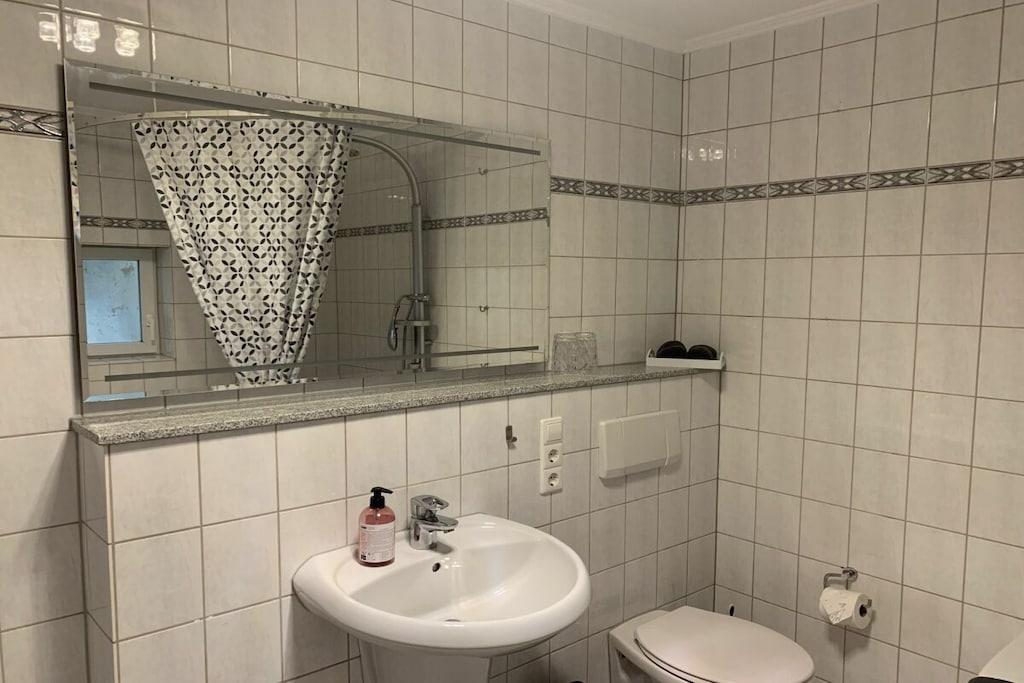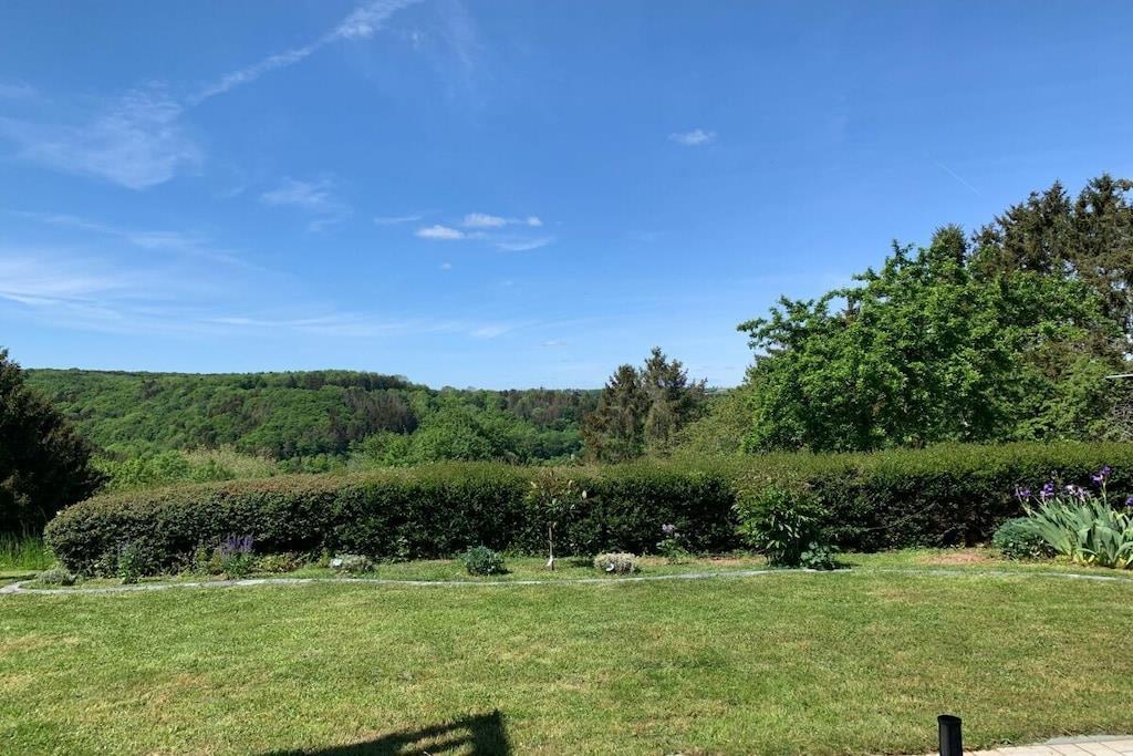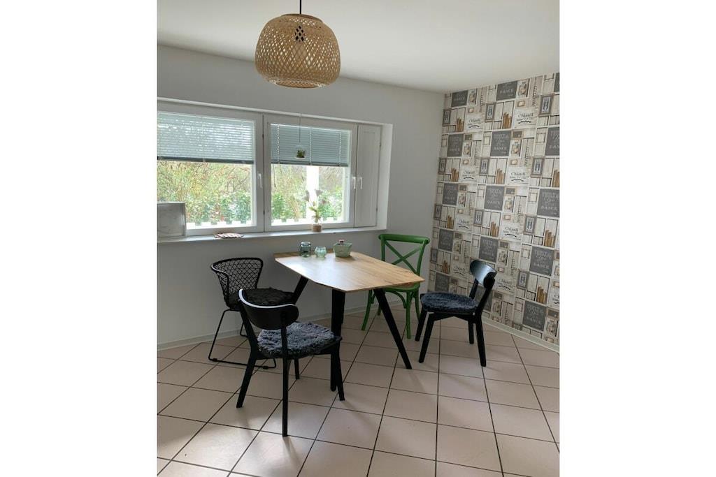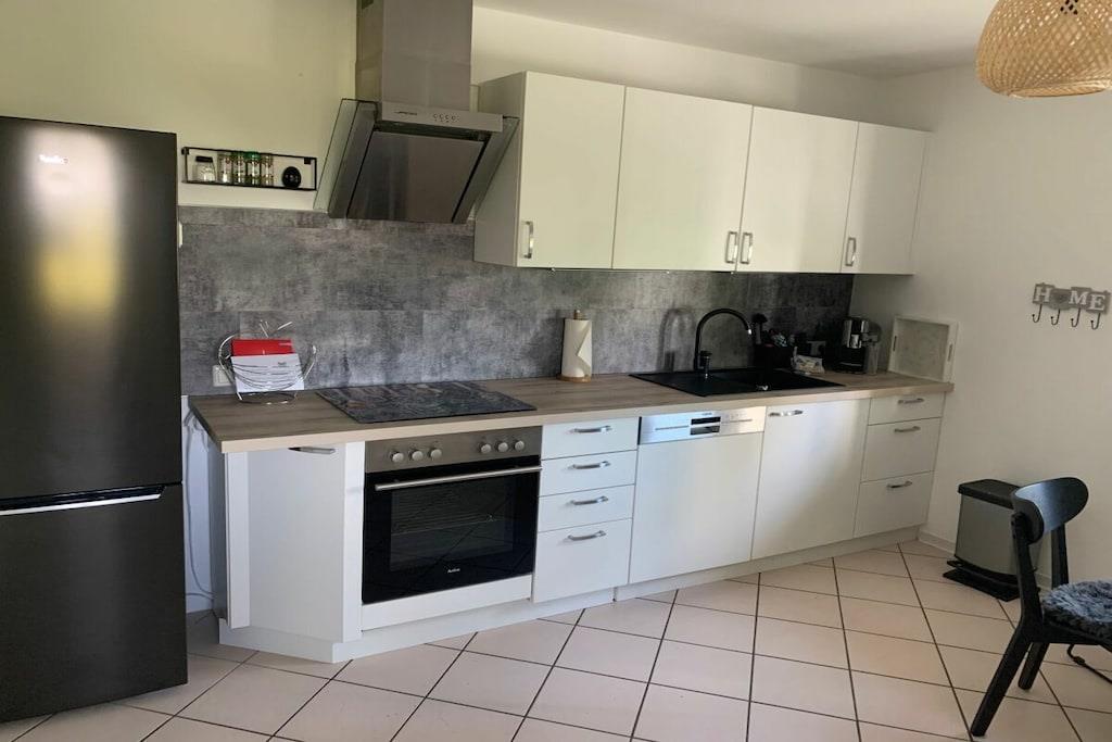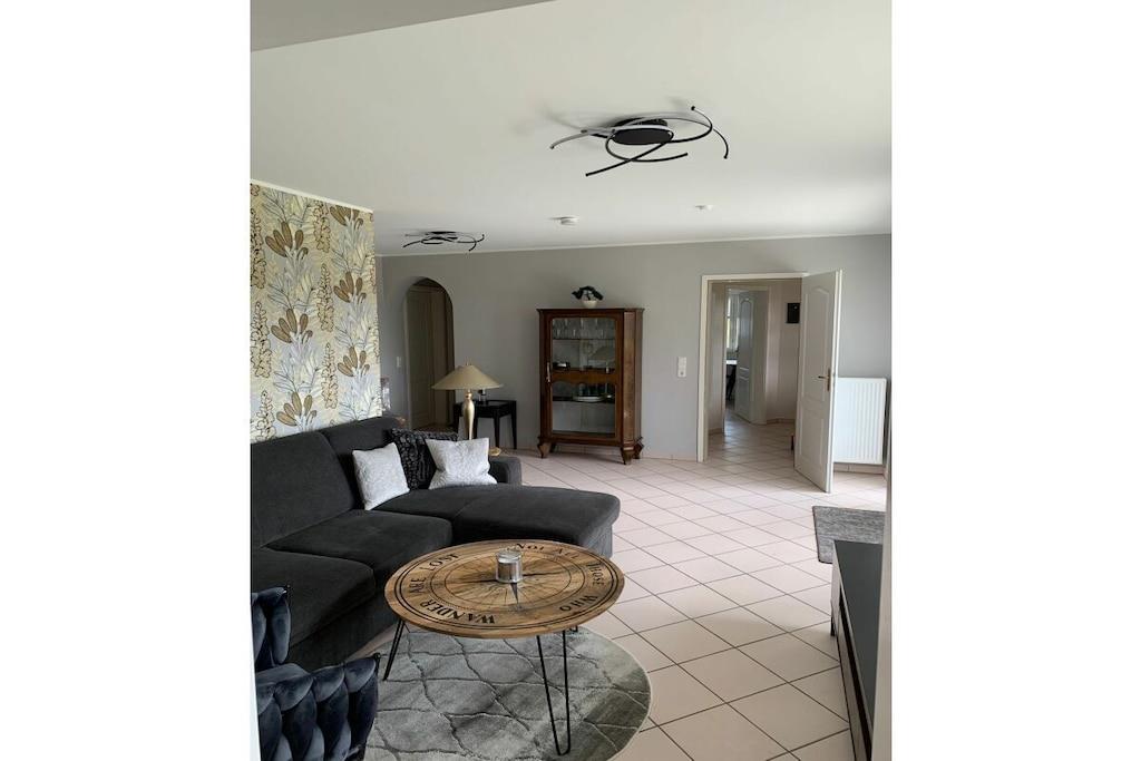 Lichtdurchflutet präsentiert sich das coole Wohnzimmer mit 4 bodentiefen Fenstertüren mit Ausblick über die Terrasse ins Grüne, Kylltal und der Silhouette von Bitburg. Möbliert mit Boxspringsofa mit Couchtisch, Lowboard mit gr. TV, Lese- und Schreibgedönsecke, Sessel und verschied. Tischchen Wohnküche möbliert mit franz. Bistrocharakter, moderner EBK ( Cerankochfeld, Backofen, Miko, Kaffeeset, Mixer schönes Geschirr, Abstr., etc.), Kochen und ausgiebiges Frühstück im Urlaub werden zum Vergnügen. SZ I: Masterbedroom mit elektr. Boxspringbett 1,80 x 2,00 m und Bad en suite (Rundeckbadewanne mit Dusche, WC, gr. LED-Spiegel, Waschtisch, Fenster, Ablagen SZ II: mit Lederboxspringbett 1,60 x 2,00 m mit kl. Vorflur und GÄ-WC nebenan Alle Räume werden mit bequemem Mobiliar, Design-/Antikklassikern und kunstvollen Objekten bestückt. Die Kombination der modernen, klaren Form- und Farbsprache mit hyggeligen Charakterteilen spendet somit eine wohnliche gemütliche Behag-lichkeit und Wärme. Für Unterhaltung sorgen 2 Flachbild-TV im Wohnzimmer und Schlafzimmer, Magenta TV, schnelles WLAN, Musikanlage usw. Der Mehrwert des Grand Fleurs ist die große, sonnige teilüberdachte und fast uneinsehbare Panoramaterrasse mit Rasenfläche, Blumenbeet und Fernblick in Süd-/Westlage. Mit dem Holzchalet im Rücken, dem wundervollen Grün und Landschaft mit vielfältigem Vogelgezwitscher jedes Naturlieb-haberherz höher schlagen. Hier will man einfach nur am Haus relaxen will oder auf den schönen Terrassenmöbeln die Sonne genießen.