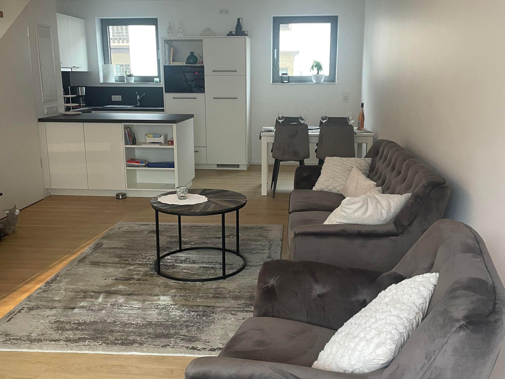 Die großzügige, ca. 68 qm große Ferienwohnung bietet alles, was Sie für einen komfortablen und erholsamen Aufenthalt benötigen. Sie verfügt über ein gemütliches Wohnzimmer, eine voll ausgestattete offene Küche mit Essbereich, zwei separate Schlafzimmer sowie ein modernes Badezimmer.