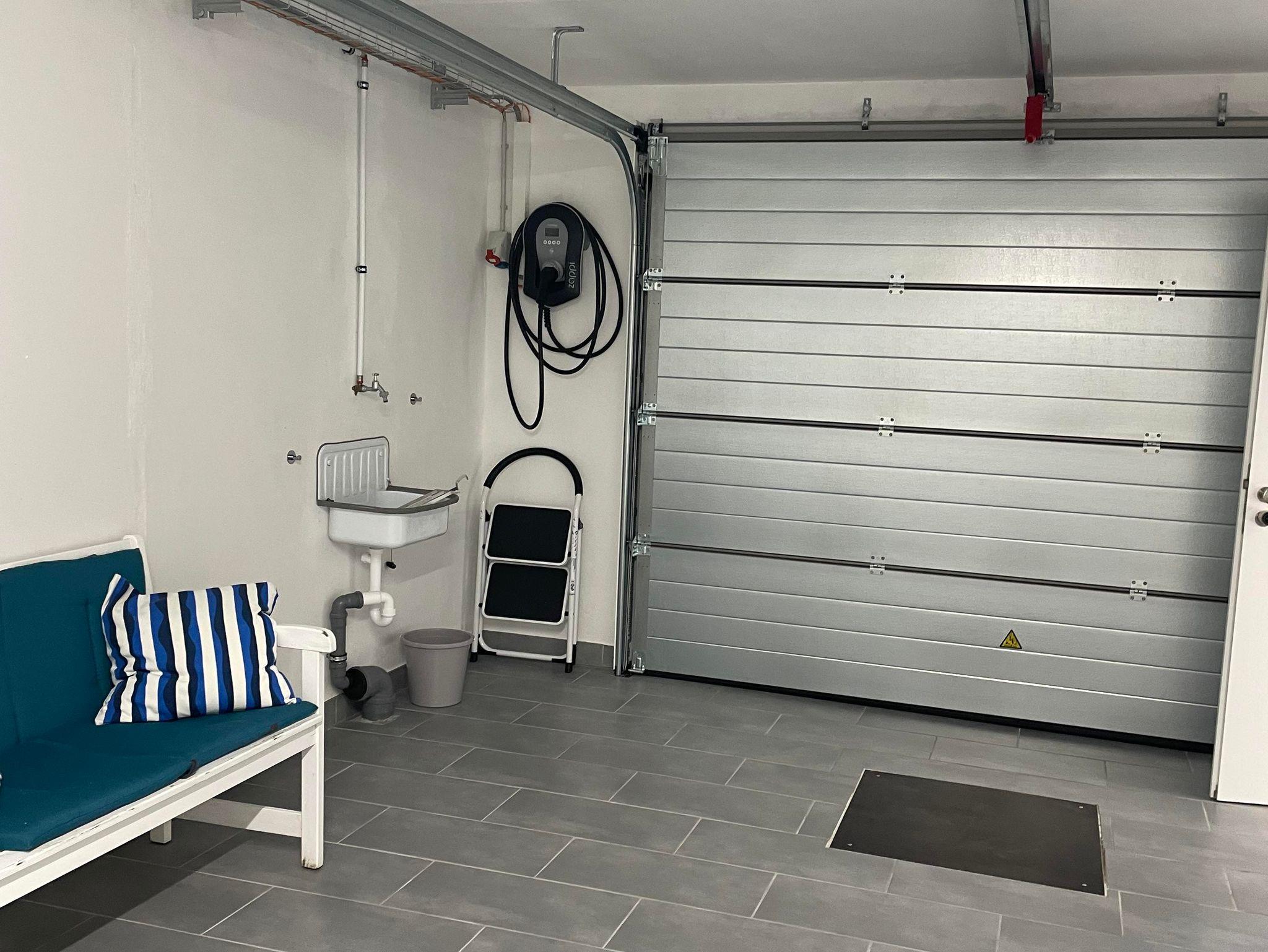 Auf dem sonnigen Balkon können Sie entspannte Stunden verbringen und den Tag mit Blick ins Grüne ausklingen lassen. Für zusätzlichen Komfort steht Ihnen eine Garage zum sicheren Abstellen Ihres Autos sowie Ihrer Fahrräder zur Verfügung. Im Erdgeschoss befinden sich außerdem eine Waschmaschine, eine Spüle sowie eine separate Toilette.